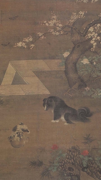 圖6 中國明代紀鎮〈春苑遊狗圖〉,日本重要美術品,絹本設色,日本黑川古文化研究所藏。圖︱黑川古文化研究所