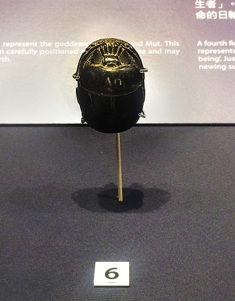 古埃及人認為,逝者的思想和回憶都存於心臟,因此在製作木乃伊的過程中會將聖甲蟲護身符擺在心臟的位置予以守護。而本次展出的心臟聖甲蟲護身符,其上便銘刻《死者書》第30B號咒語。當逝者在冥王俄賽里斯(Osiris)的大廳等候審判時,聖甲蟲護身符所銘刻的咒語能防止心臟洩漏出自己曾經做過的壞事。