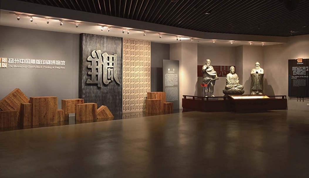 序廳是由意象的書籍、荷花、五亭橋、白塔的剪影和唐代文人元稹和白居易的雕塑,形成信息的組合(「揚、越間多作書模勒樂天〔即白居易]及余雜詩,賣書肆之中也。」——〔唐〕元稹《白氏長慶集》序),告訴觀眾們唐代揚州雕版印刷業即已形成規模,並延續至今。清代曹寅在揚州天寧寺主持刻印《全唐詩》和康熙皇帝在故宮審視閱覽跨時空的場景,讓人駐足、讚嘆;揚州清代民間刻坊的復原,能達到「此時無人勝有人」的藝術效果;浩瀚可視的倉儲式雕版印刷版片庫,其獨特構思定會讓觀眾為之震撼。