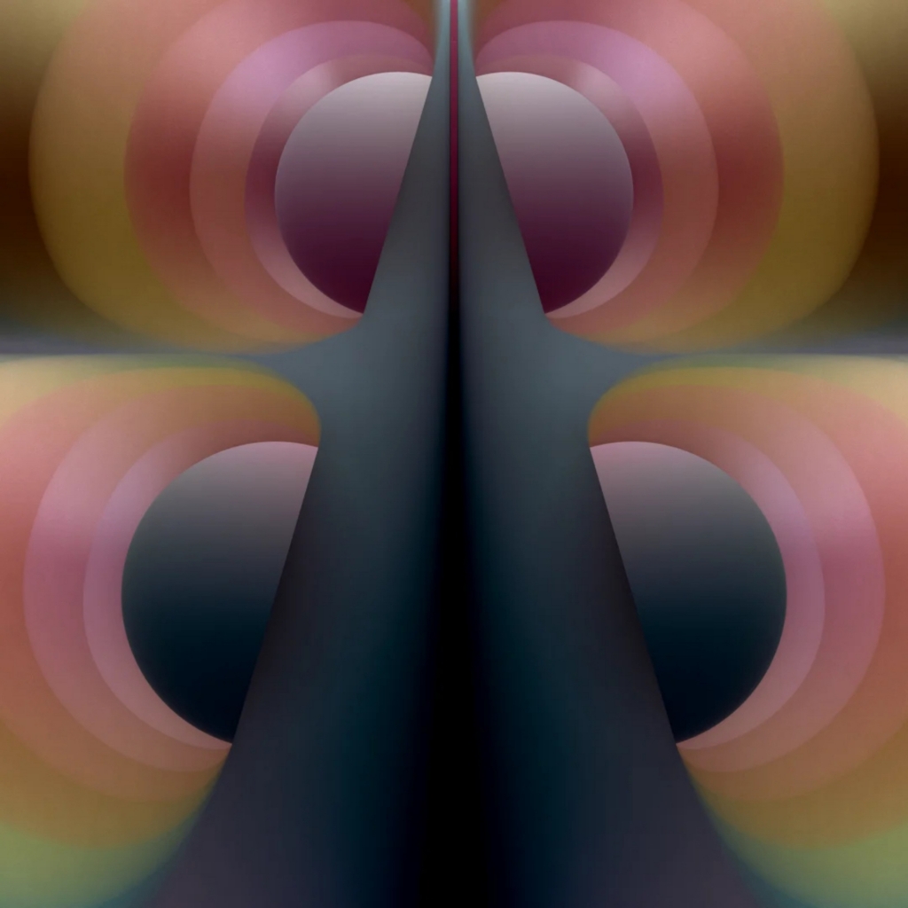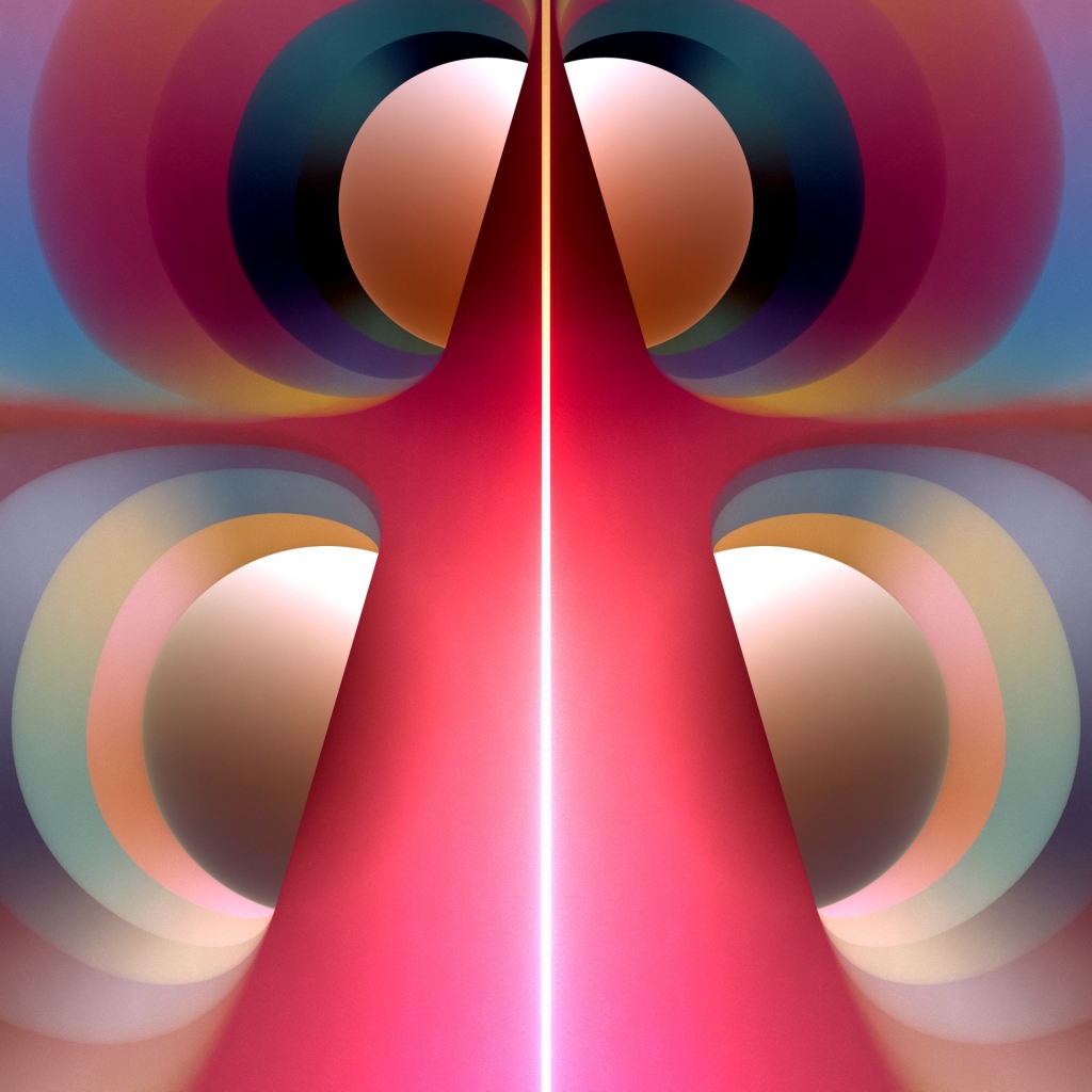 以抽象手法表現女體樣態而著稱的美國藝術家洛伊・霍洛韋爾(Loie Hollowell, 1983-)在其繪畫脈絡之中,更進一步地跨入NFT創作「收縮」(Contractions)系列,並以生成藝術發展出多達280件作品。霍洛韋爾的創作源於極為私人的感知體驗,聚焦以女性身體的特徵為表現主題,從早期的具象逐漸轉向抽象而創造出獨樹一幟的身體景觀。而在近期的創作,她更直接地自我剖析身為女性、母親的身心狀態作為創作主題,並將人體解剖學約化為簡潔的幾何造型,從微觀到宏觀的視角,探看內在身體與外部世界的連結關係。