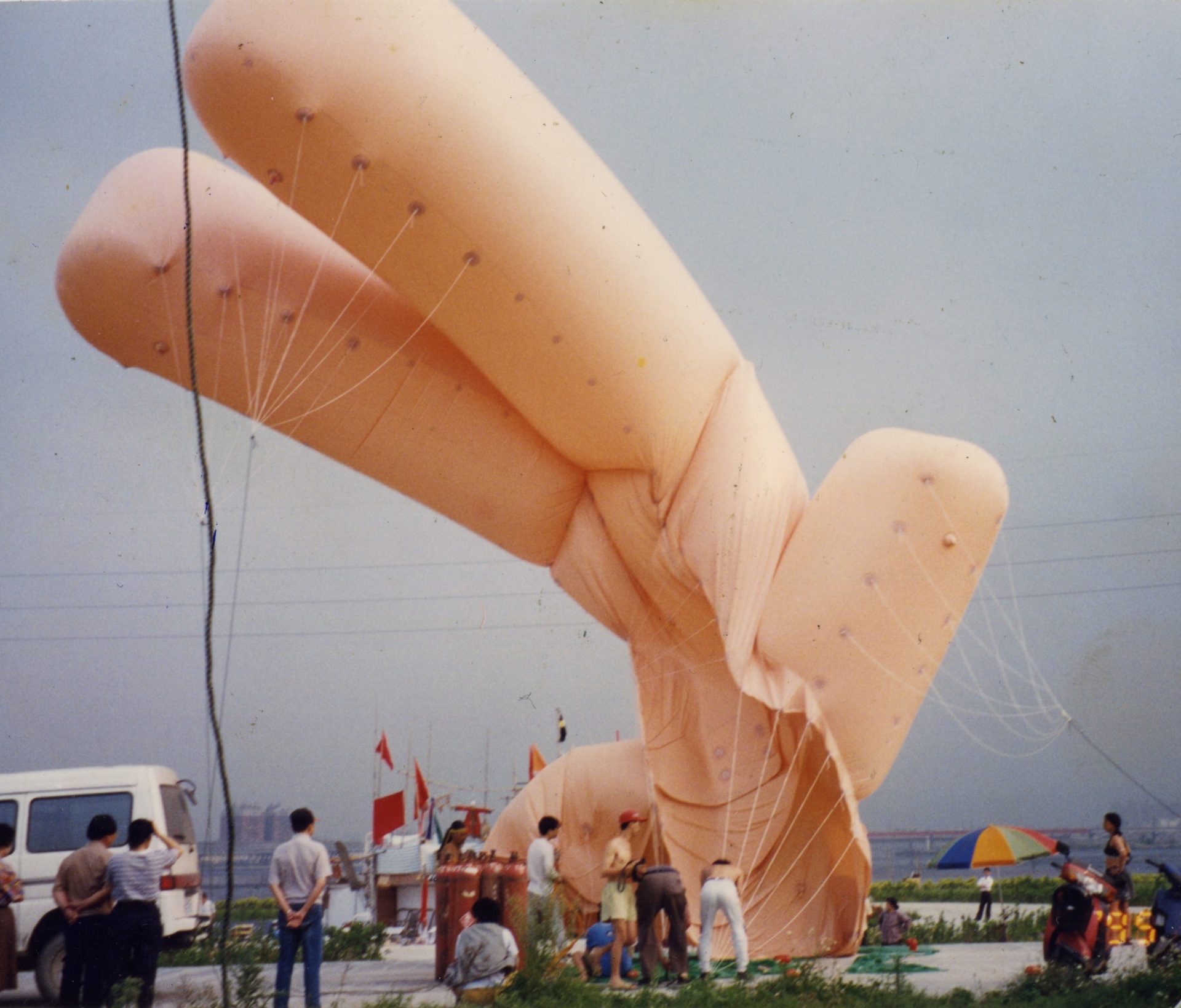 「破裂節」作為一個「藝術節中的藝術節」,整份計畫書中最引人注目的是,一只飄浮空中30公尺長的巨大人形氣球,預計將吊起桌椅、冰箱、正煮沸的火鍋,甚至是一尊維納斯雕像等物體,再漂移到都市的另一處地點,讓它們從天而降,砸毀堆置為一小丘。在活動前夕發出的傳單上,吳中煒邀請群眾:「歡迎你將家中廢電器、新衣服、雞蛋、蕃茄、考卷……捐出來,吊到臺北半空中拋落、摔個粉碎!」氣球下方則計劃由噪音團「零與聲」及小劇場團體「志宏佐佐木」、「叛艦喋血」與「河左岸」等上演一連串偶發表演,並宣稱要將兩位吉他手吊在半空中演奏、一男一女操作洗衣機製造噪音等。這份充滿想像力但可執行度趨近為零的計畫提案,落在概念與現實之間的縫隙中。不出意外地,升空儀式因天候及技術問題干擾,狀況頻傳,消氣的人形氣球意外成為展覽話題,登上不少報紙版面。