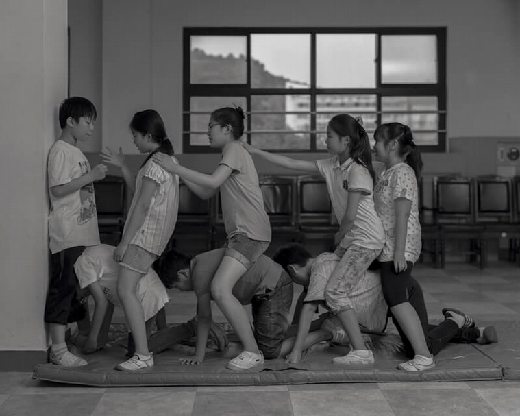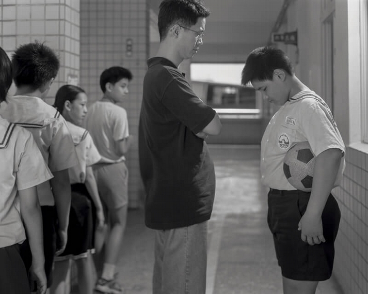 「迴返計畫」是同時身兼教育者與拍攝者的陳敬寶,透過學習單的意見回饋收集學生與家長對於校園生活、兒時記憶的回想,然後引導幾位願意配合的學童利用課餘時間搬演而成。其中,最首要的問題便是如何理解這些孩童的生活形貌。因為孩童世界的再現,經常有過於扁平又片面的弊病,往往不是為了滿足成人凝視下所強加的純真概念,就是區從於一種懷舊式的刻板童年想像。而華人社會慣常的幼體化對待,更是經常將孩童貶抑為不具有主體性的人,這點誠如郭力昕的觀察:「華人、或深受儒家觀念滲透的台日中韓等社會,普遍不習慣或不願意賦予孩子以完整的人格,以至於兒童在成長過程,總受苦於傳統儒家社會裡成人威權性格的心理傷害。」(註1)而這種儒家思想教條的運作場域,除了家庭之外,最重要的便是學校教育;校園生活正是一個人逐步形塑其價值觀、品味喜好、行為模式,乃至於生命態度的規訓場域。因此,「迴返計畫」除了召喚人們有所感觸或早已遺忘的記憶場景,其實也指向成長過程中最根本的生命政治力量。校園本就是一個規訓空間,而孩童本來就在其中經受著生命政治層次的深刻模塑,因此陳敬寶將任教學生轉為攝影題材所觸及的倫理界線,更顯得必須小心應對和處理。因為在搬演校園生活的邀請背後,仍無可避免地隱含一定程度的師生權力關係,倘若攝影家採取威權式的編導掌控,僅僅是將孩童視為可以任意擺布的被動人偶,那麼編導式攝影的操作就會是對孩童主體性的再次貶抑與壓制。