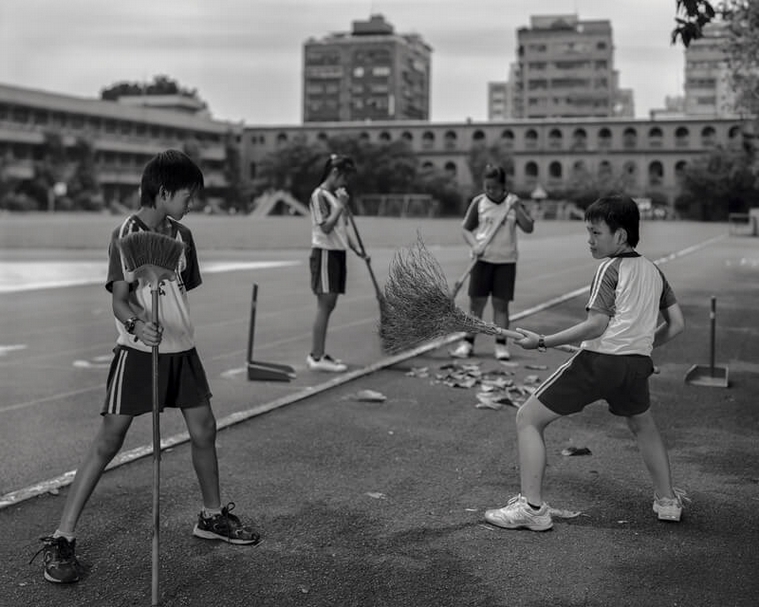 這點正是「迴返計畫」表面上看似平淡、單純,實則艱難無比的挑戰:陳敬寶一方面必須避免其攝影只是從成人眼光出發對校園生活與童年往事的刻板模塑;他必須保有對拍攝對象生命經驗的真切彙整與深描。另一方面,他也必須謹慎處理創作者與拍攝對象之間的關係,避免受他邀請而來的孩童淪為再現校園生活的布景道具,甚至使影像所打開的實踐場域成為二次規訓的教條化空間。可慶的是,「迴返計畫」巧妙地穿越了上述的困難障礙,在攝影家特意並置之靜照與學習單的來回閱讀過程中,我們毫無疑問仍感受到孩童們飽滿的主體性。以至於,這個從台灣出發並逐步擴及日本、韓國及中國的攝影計畫,為我們提供一個與各地學童之生命記憶相關,同時又能延伸省思亞洲四國教育制度或政治體制之異同的宏觀視覺文本,深具層次豐富的可讀性。