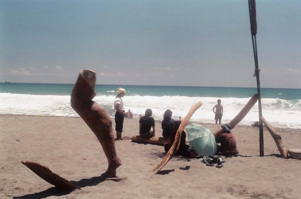 東海岸地景藝術節上的作品大多為固態型的藝術。配合著東海岸小旅行,讓我們有一種視覺的饗宴;然而,在地景藝術節外,許多在東海岸的共同創作,更類似於環境美學的藝術型態,創作的駐點是流動性的、是一種體驗,也是一種運動,要求著參與者的主動對話。Makotaay Artist Village(港口部落)生態藝術村是藝術創作型態、創作與生活的交織;台東都蘭意識部落的運動,也是從部落裡面的生活方式轉化而來。自2002年前的春天,一群以都蘭為活動範圍的藝術家,自發性地集結在都蘭的金樽沙灘,每年展開短暫的海岸駐地創作生活。這20年來,意識部落成為每年持續性活動。這一個游牧式的創作型為,更像是參與者對於短暫部落的一個想像,將生活,創作的界線模糊化了。在沙灘上不約而同所創作與生活的集結也就每年都留在沙灘上了。(註11)重視過程而不重視實際留下什麼物質性的作品的藝術形式,也是一種創作態度。最後當這群藝術家討論這一些作品有什麼意義的時候,達鳳.旮赫地指出:「老人家的習慣,到了一個新的場新的環境,或者去某一戶人家作客,一定要拿一個東西跟人家交換。我今天是用我最熟悉的方式,就是一件作品,當作是給金樽海灘的一個小小禮物。」(註12)