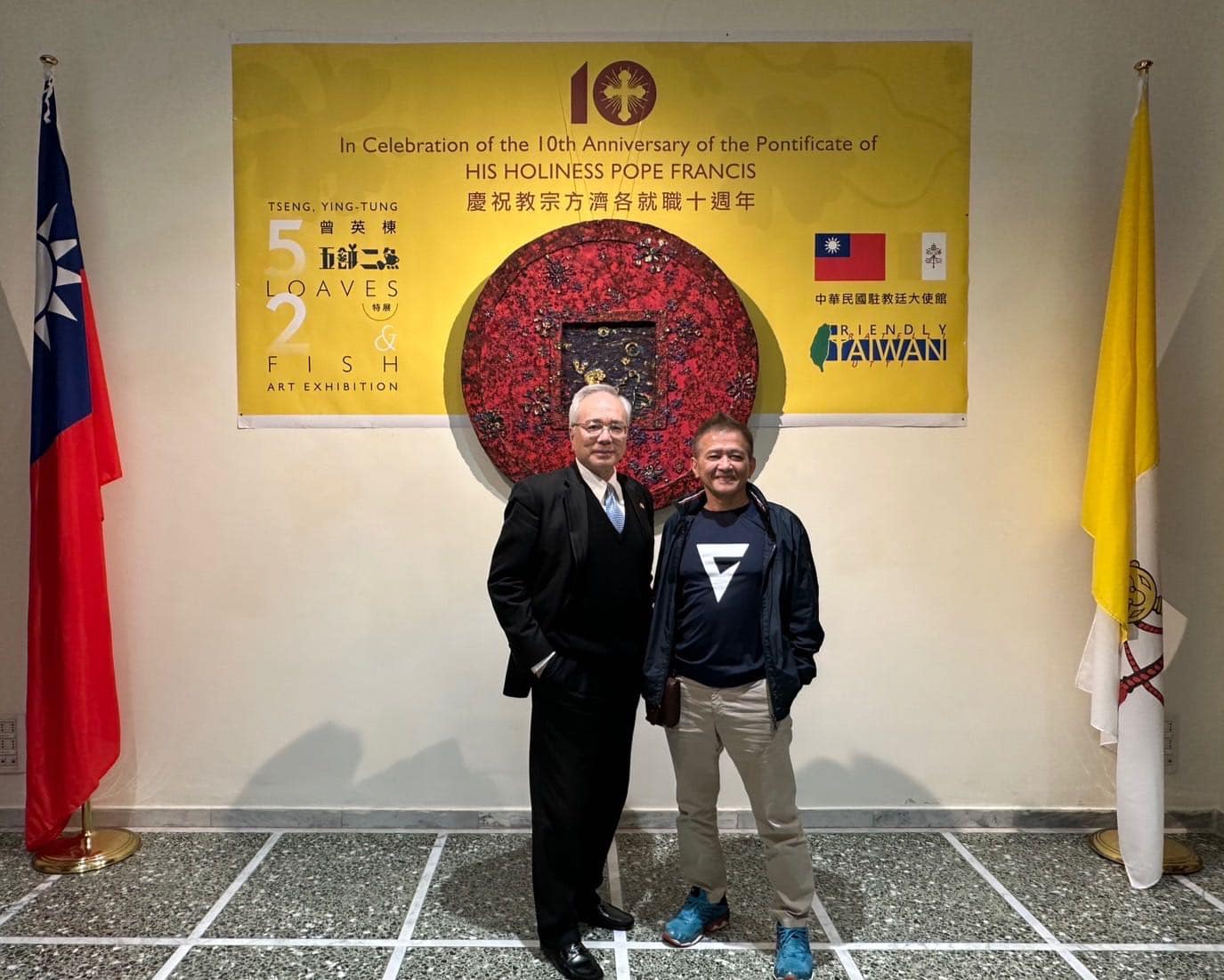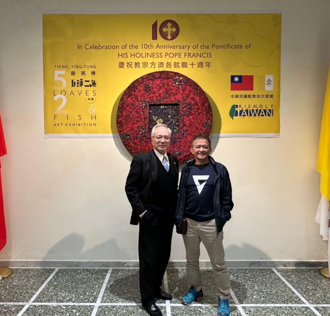 本(3)月13日是教宗方濟各就職十週年,中華民國駐教廷大使館將舉辦《五餅二魚》展覽,作為禮獻。駐教廷大使李世明表示,本次將特別把大使館公共空間,包括長廊、會客室等等,設計為展覽空間,並邀請台灣甘樂阿舍美術館創辦人曾英棟的27件藝術品進駐。