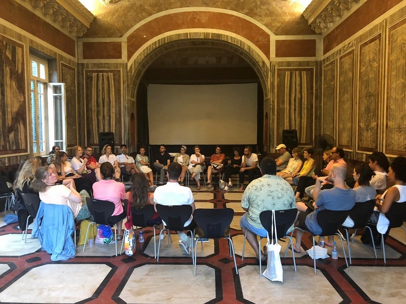 細究KdK的課程設計,為期兩年的學習歷程包含:(一)四組研究主題搭配學期論文:展覽史、藝術史與現當代藝術理論、跨學科性(transdisciplinarity)、跨文化性(transculturality);(二)集體研究與展覽實踐;(三)個別策展研究與實踐;(四)碩士論文;以及兩次大型的校外考察。身為KdK第五屆的學生,集體展覽實踐與校外考察,是我認為相對特殊的學習經驗。規劃於第一學年的集體研究與展覽實踐,每屆皆以全體學員「共同合作」的工作模式(意即13到15名「準策展人」共同發展一檔展覽),針對不同的展館與主題,在所方與校方的全額資助下進行展演發表。以我參與的計畫為例,是從瑞士策展人哈洛.史澤曼 (Harald Szeemann)1975年的展覽「單身漢機器」(Junggesellenmaschinen)出發,針對蓋提研究中心(Getty Research Institute)提供的相關檔案文獻進行研究,並從歷史重演、展覽史書寫,與當代對應的角度發展策展計畫。而規劃於第二與第四學期的校外考察,則是順應每屆課程與研究方向,與相關機構合作進行的校外參訪(通常為期一至二週)。以2018年及2019年為例,KdK分別在貝魯特美國大學(American University of Beirut)及里約熱內盧歌德學院(Goethe-Institut Rio de Janeiro)的合作與資助下,前往黎巴嫩和巴西進行考察。透過密集的機構參訪與對談交流——從學院、博物館、畫廊、計畫空間、駐村單位等制式藝術空間;到私人收藏(藏家住所與私人展館)、地下藝術團體、弱勢族群的教堂暨自策展覽空間,以及藝術療養院所等非典型的藝術機構——這兩次的校外考察,皆得以從各式機構中策展實踐的多樣性,經驗當地獨特的藝術場景。