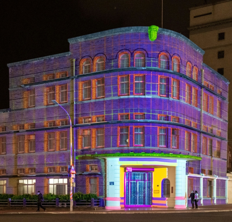 由Plan b負責的臺東館座落在這一個莫名其妙的燈區,即便他們做得很有氛圍,但可惜擺錯地方、宛如走錯棚。(設計發浪提供)
