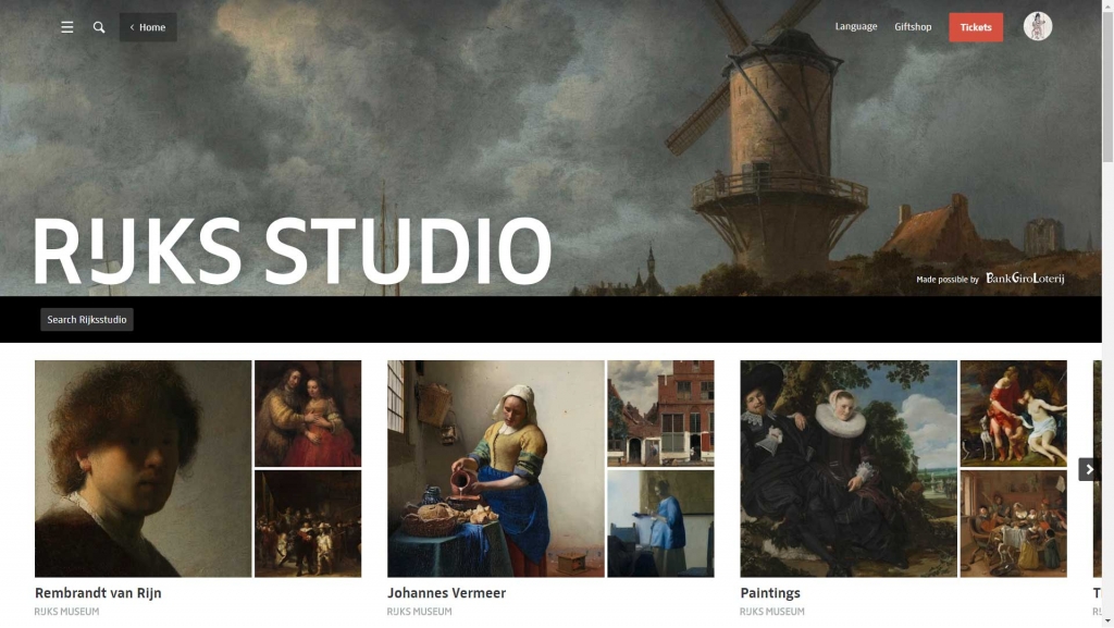 荷蘭國家博物館「Rijksstudio」頁面。(網路截圖)