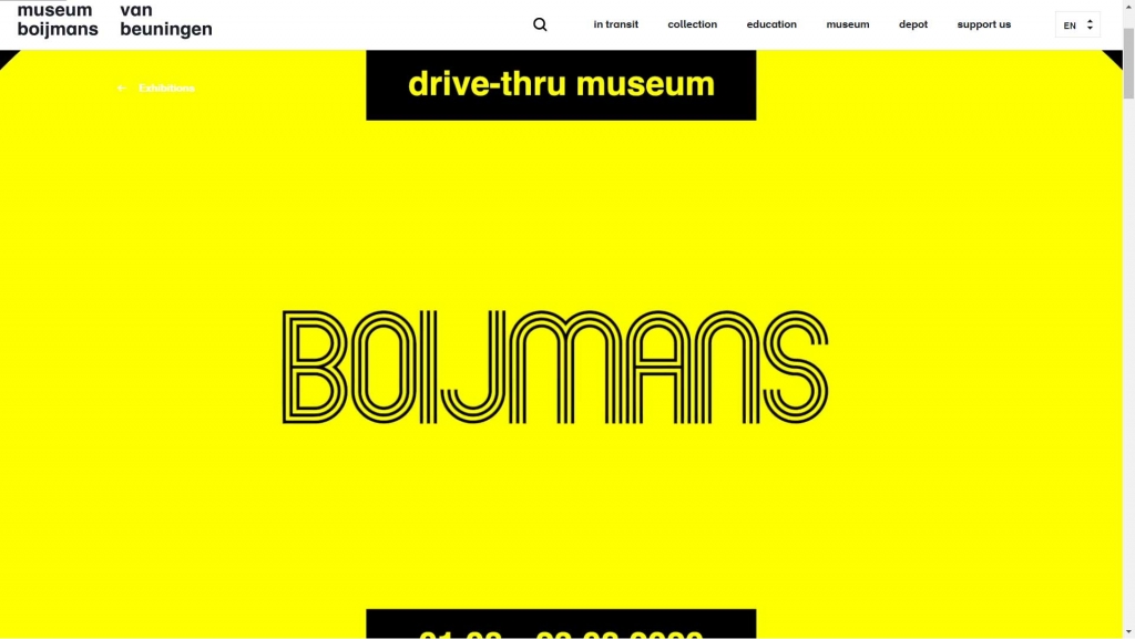 位於鹿特丹的博伊曼斯.范伯寧恩美術館(Museum Boijmans Van Beuningen)則與鹿特丹阿侯伊體育館(Ahoy)合作推出「得來速美術館(drive-thru museum)」,於體育館內設置五十件美術館藏,提供參訪者租用電動車駛入空間參觀。鹿特丹鄰近的斯希丹之市立博物館(Stedelijk Museum Schiedam)則於聖誕假期間與光影工作室LiGHT UP COLLECTIVE合作「Your photo in the light」,將斯希丹市民投稿的影像放大投射在市政廳牆面,為疫情而更加蠻長黑暗的冬季,帶來些許亮光與希望。這些新型的觀展形式,反應博物館分眾思考的積極性,以及開創既有空間之外的「另類」實體文化體驗。