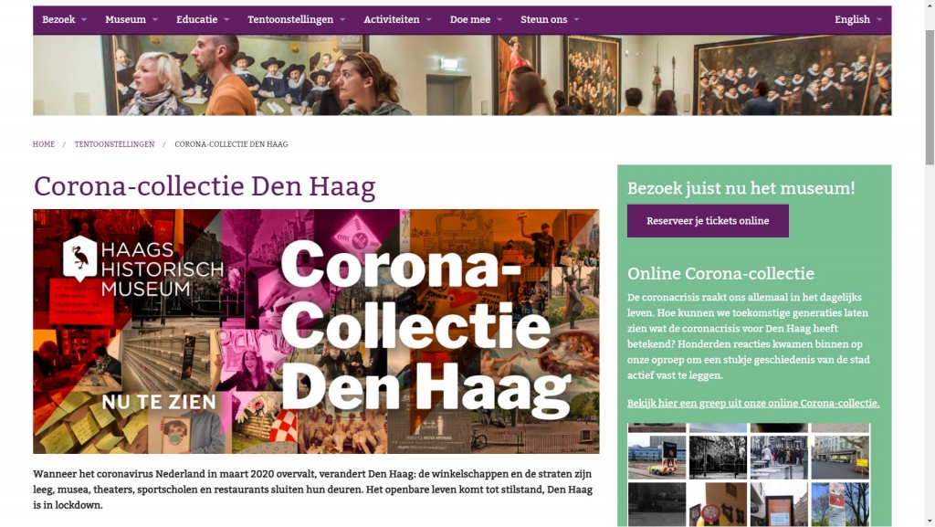 海牙歷史博物館「新冠病毒典藏」頁面。(網路截圖)