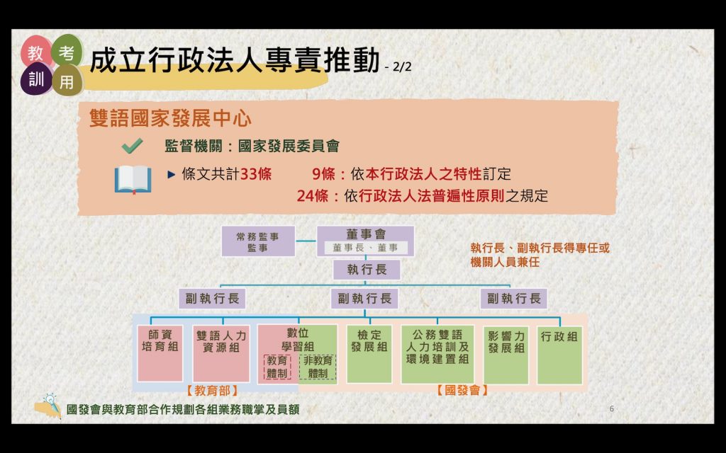 十多年前就投身公民文化權和客家學的文化政策學者王俐容,在談及「立法效益」與「政策治理」兩者不同調時,某些預期的立法美意也宛若蕩然無存。像是去年國家發展委員會要推動「2030雙語國家」(雙語自然是直接指定為「中/英」為雙語),馬上被行政院列為重點施政,以經濟發展為唯一理由的「語言教育—國家競爭力」一條鞭的軀動,竟然完全視才頒布不到3年的《國家語言發展法》於無物,罔顧所有對國家法益與社會法益有所期待的文化法學、文化政策學者們的期待。
