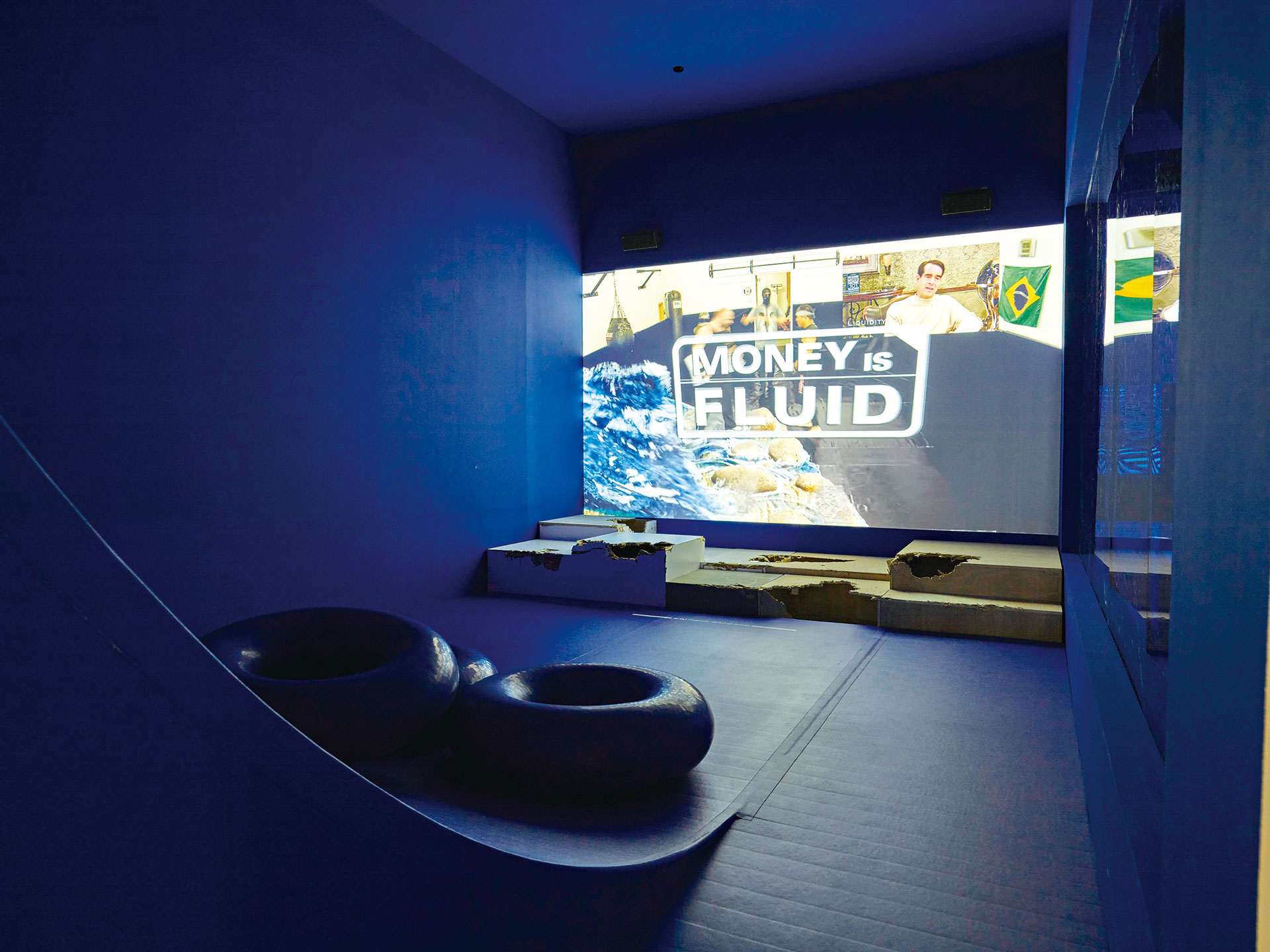 更確切地回答您的問題,史德耶爾從紀錄片到三度空間錄像裝置的轉向發生於2010年代初期。在她看來, 最終去向不是電影院就是電視螢幕的紀錄片——直到1990年代,德國和其他歐洲國家的公共電視一直支持具社會參與性的紀錄片生產——隨著數位影像的出現,不能再繼續走以前的道路了。不只數位科技比類比擷取影像更容易偽造事實,而且數位影像本身與產生它們以及經常讓它們在數據收集和線上行為分析的網絡中具「操作性」的算法系統緊密相連。我們看到一幅影像,但影像背後所發生的一切卻不為我們所見,以致於數位影像所隱藏的遠勝於它們所呈現的。史德耶爾則是要和表象反其道而行之:我們的世界越是變得虛擬和難以捉摸,越是將我們的感知縮減至僅剩電腦螢幕前的眼球活動,她的藝術越要有形有體,越要可以感知和觸摸:她建造一個環境,任觀眾在其中遊走,找到自己的位置,並且有意識地和其他同樣身體在場的人分享空間。每件裝置所提供的家具和座椅都成了好玩的道具,例如《流動性公司》(2014)中的救生圈,《社會模擬》(2020)中的皮拉提斯球等等,抹去了美術館空間的神聖光環,邀請觀眾不斷改變身體的位置。