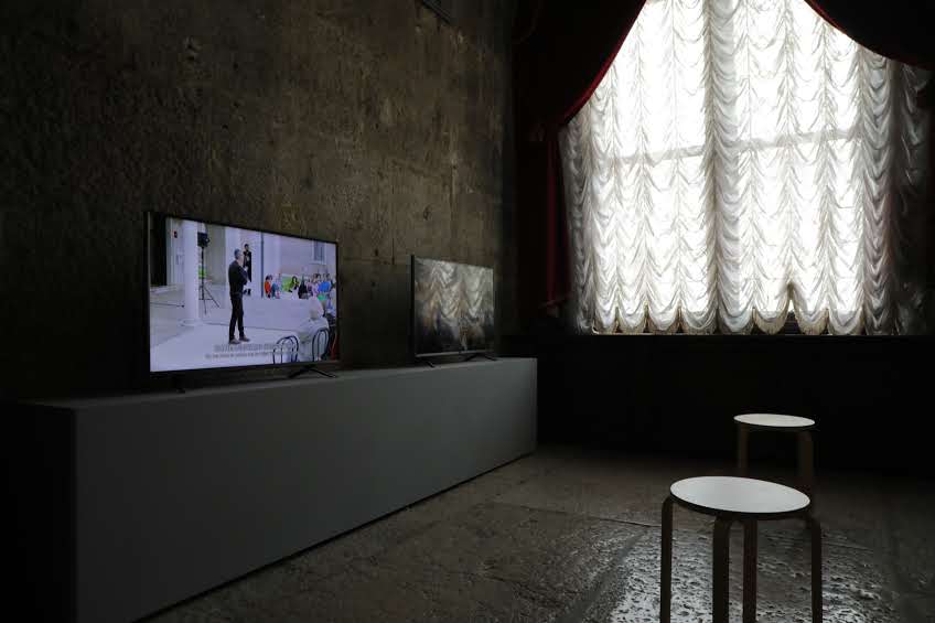 王:我們跟這個場地——普里奇歐尼宮(Palazzo delle Prigioni)——有很長的合作關係。場地的經費贊助是來自台灣文化部,跟這場地做了長期合約,每10年簽一次,不管我們來不來,都已經有這個租約;可也不是錢的問題,不是(因為)我們付了很高的租金(所以就要來)。而是說,因為威尼斯雙年展是一個最重要的國際平台,雖然我們受到很多牽制,可不管怎麼樣,它仍是重要的。我們愈不主動參加,就愈沒辦法跟國際對話`,而台灣的處境已經非常的不好了。我們也並不是在做宣揚台灣的事情,但應該要去爭取這樣的對話平台。就是說,到底是把門關起來比較好,還是說我們不管做什麼,還是要把門打開?這是一個選擇嘛,我們大概還是覺得門打開是很重要的。
