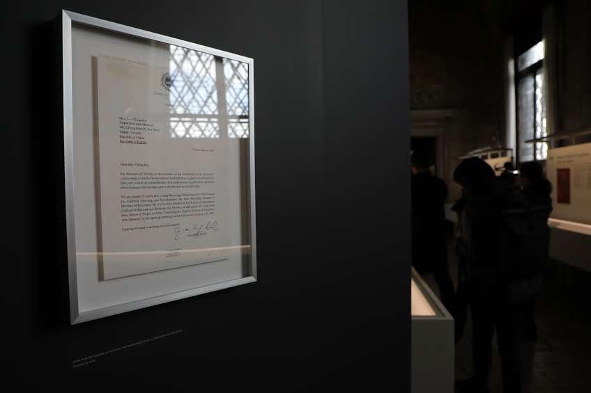 對台灣來說就很敏感,因為您知道台灣在國際政治的地位,一直是處於很微妙的位置。您可以看到我們整個展覽的一開頭,是一封1992年大會給我們的邀請信。當年我們還是以「Taiwan Pavilion」這樣的國家館形式去參加,它是非常政治的。我們以「Taiwan Pavilion」名義,在威尼斯只持續三屆,到2001年就結束了。後來就像現在以所謂平行展的方式參與,顯然政治意識的議題在這裡面佔了很重要的影響;早期台灣館會比較思考所謂身分的問題,但到後來也不那麼被政治的事情影響,反而比較回到藝術本身,去討論藝術可以幹什麼,或者可以參與國際上什麼樣的討論。