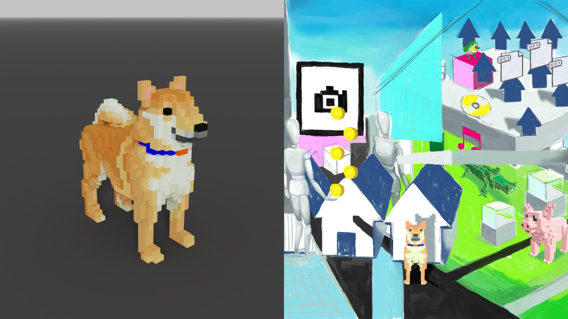 洪司丞從虛擬世界與區塊鏈相結合的角度建構創作,他使用3D繪圖軟體VoxEdit進行創作。當二維電腦圖像的影像資料中的「體素」(Voxel)在區塊鏈世界被大量運用,原本帶有人溫度的手繪逐漸式微,洪司丞透過重組方塊(Block)與體素之間的關係建構視覺概念,以電腦繪圖的方式闡述區塊鏈的技術理念,並融入沙盒遊戲(The Sandbox)等輕鬆的視覺風格。