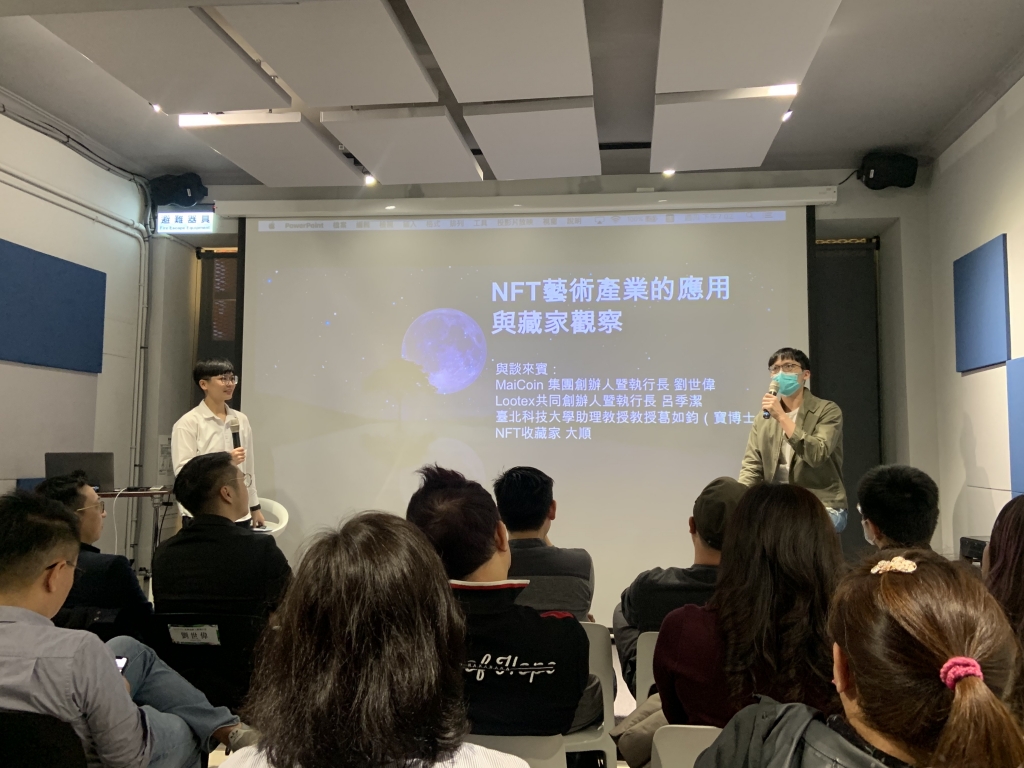 劉世偉分享了投入NFT與Lootex合作的原因,他認為沒有比藝術品更好的切入方式,若談論比特幣可能只會知道漲幅,並無切身感受。而當初會開放位於Maicoin二樓的活動空間,意即希望可以讓區塊鏈技術帶入大眾的日常生活。劉世偉認為區塊鏈技術能幫助的藝術品的流動性,且在區塊鏈世界能用數學證明藝術品的真偽,減輕鑑定成本。而台灣在NFT領域具有絕對優勢,無論是在藝術、文化台灣都不乏NFT的標的,因此,若將其NFT化,便能在全球市場發揚光大。