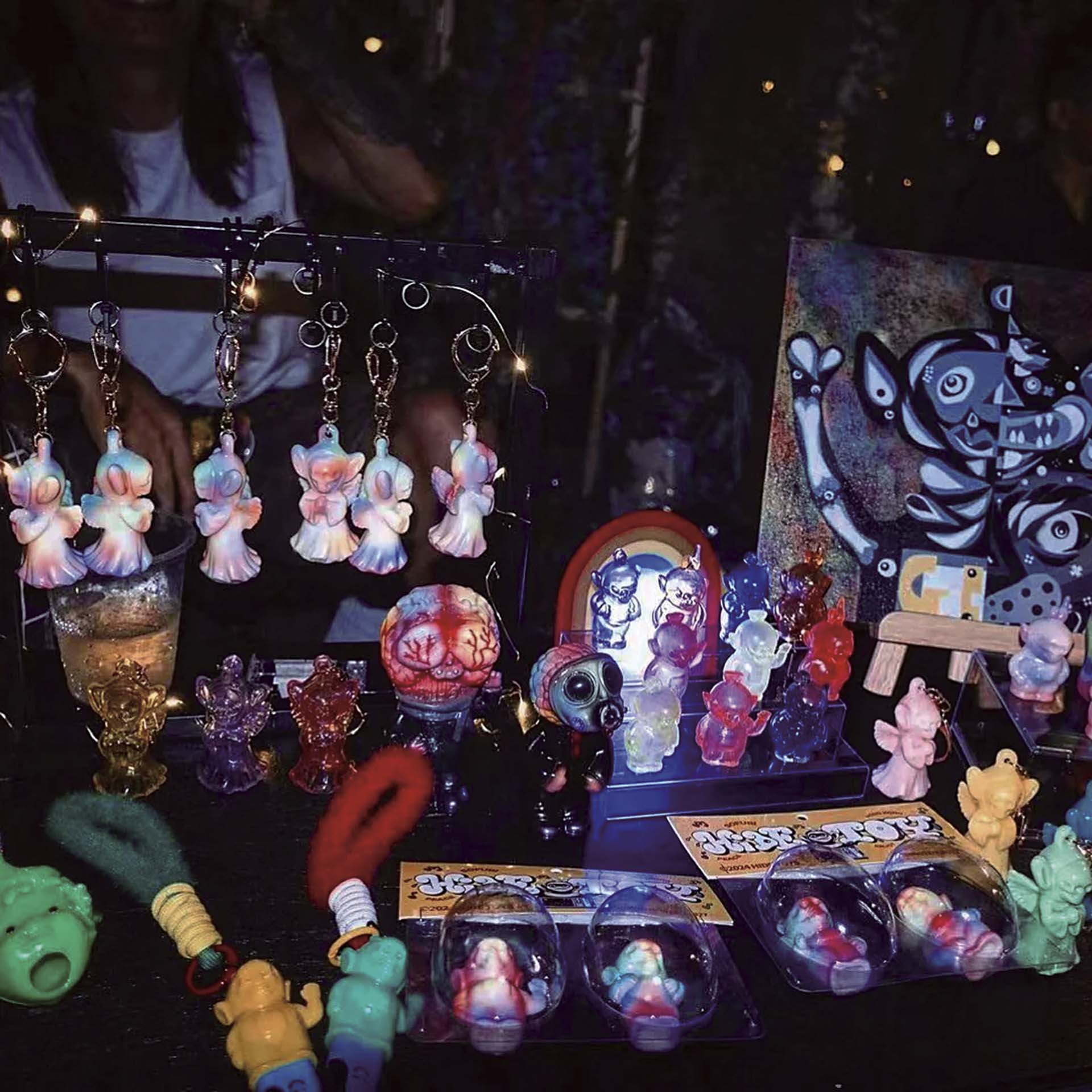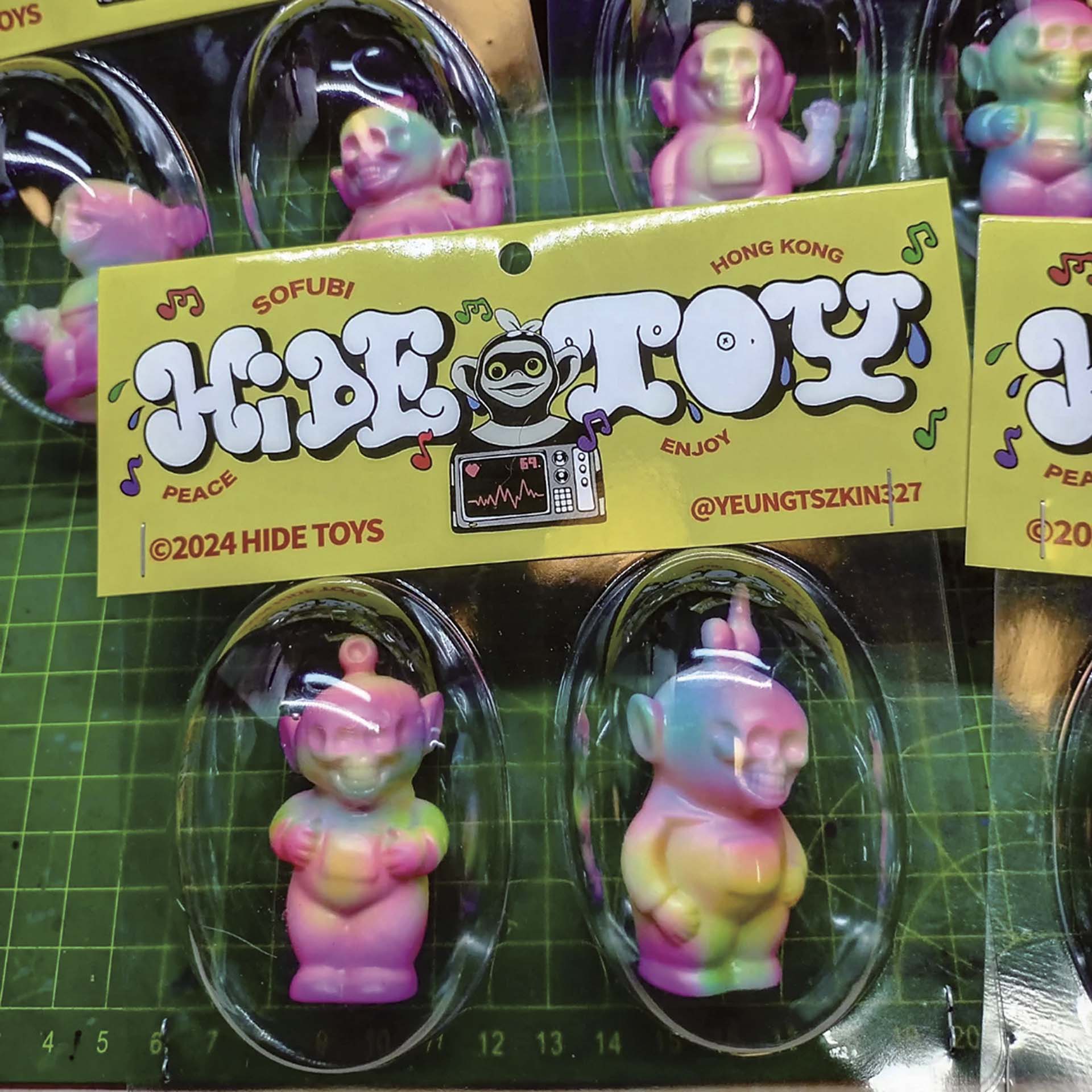 品牌取名為「Hide Toys」,意指「隱藏的玩具」,似是他自身的寫照─隱身於主流視野之外的創作者,用作品與同好進行秘密的交流。他的風格,正是在這種對街頭文化的深刻理解與個人記憶的沉澱中,逐漸成形。