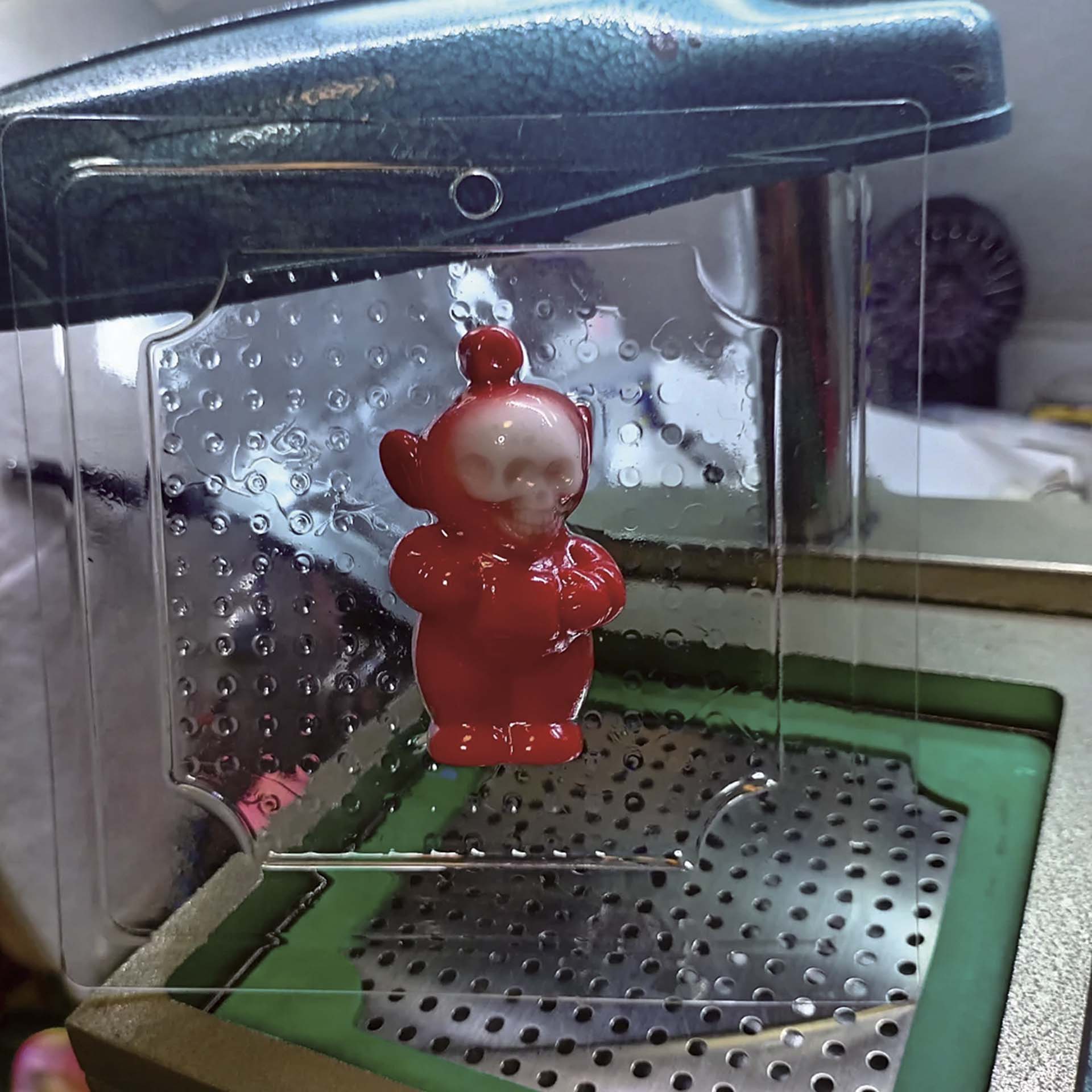 從樹脂(Resin)到軟質搪膠(Sofubi)材料,楊子健對媒材的選擇,反映了他對「手作價值」的尊重。他認為樹脂創作從雕刻、翻模、打磨到上色,整個過程「一手包辦,是時間來換心機的作品」,他由衷敬佩那些堅持此道的匠人。