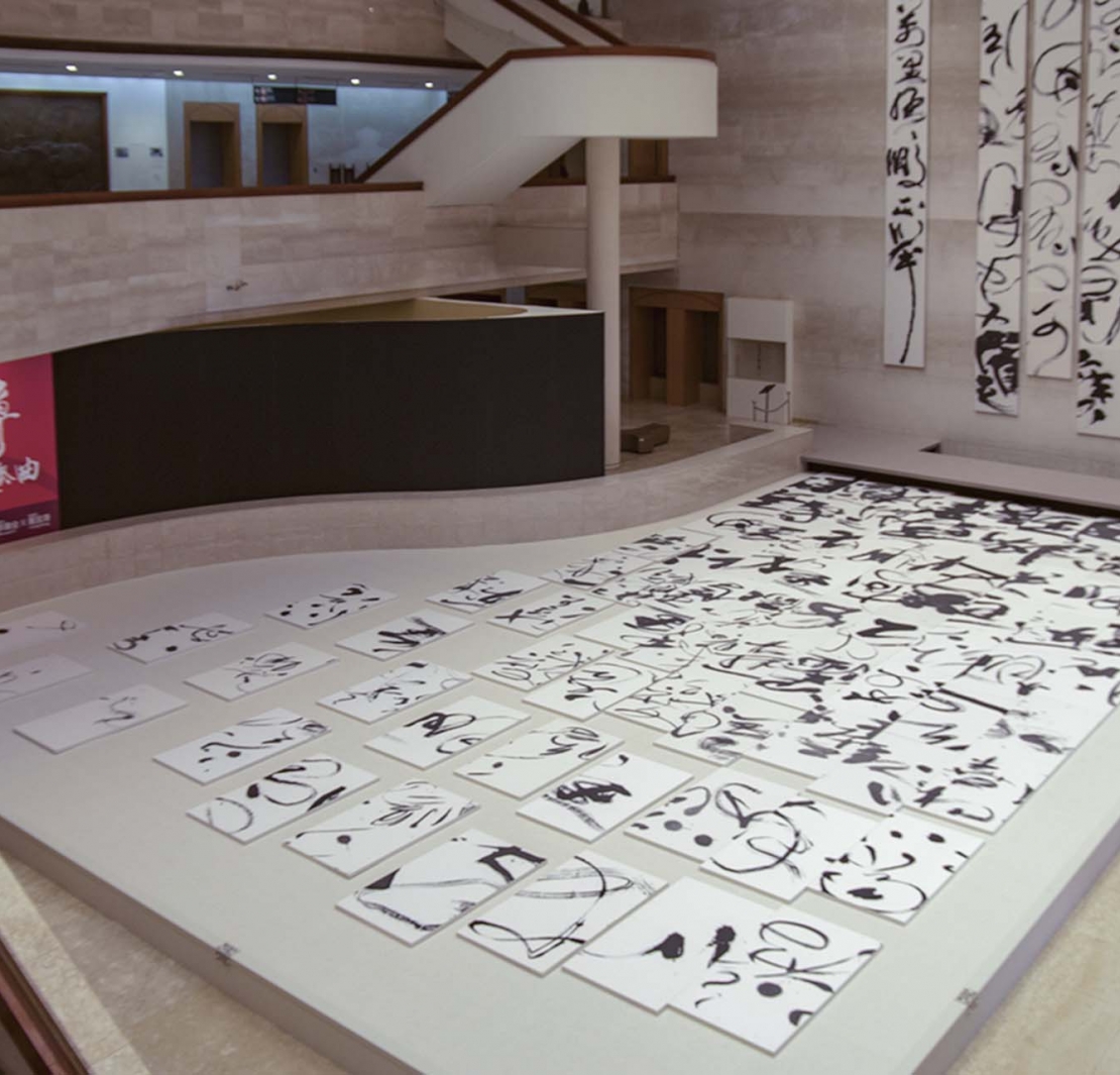 2021年,台灣第一個以書法藝術為主題的官方館舍「橫山書法藝術館」(簡稱橫山書藝館)正式對外開放,開館特展「飛墨橫山」有意跳脫人們對書法的既定印象,開展更多屬於當代與國際對話的項目。在書藝館正式開幕之前,書藝館便藉由不同的藝術論壇與書藝策展工作坊的舉辦,意圖打開書法藝術的框架,進行更多跨領域、跨文化、跨世代的參與,同時作為未來書法藝術在典藏、研究、開啟更多討論與可能的基石。其實如果細究台灣美術館的典藏,三大以現當代藝術為主軸的國立臺灣美術館(以下簡稱國美館)、臺北市立美術館(以下簡稱北美館)、高雄市立美術館(以下簡稱高美館),其實在早期都有一批以水墨、書法為主的收藏,高美館甚至在1994年開館之初,便是設計以書法與雕塑典藏為主軸的美術館。然而隨著時間推演與諸多包含經費、政治、美術館定位走向等考量,水墨書法收藏在這些美術館的重要性與佔比都逐漸減少。書藝某方面的沉寂,乃至於邊緣化的聲音不時耳聞,於是令橫山書藝館的成立儼然成為書法藝術新生的契機,由是固然振奮人心,卻也引起質疑其作法的聲音。