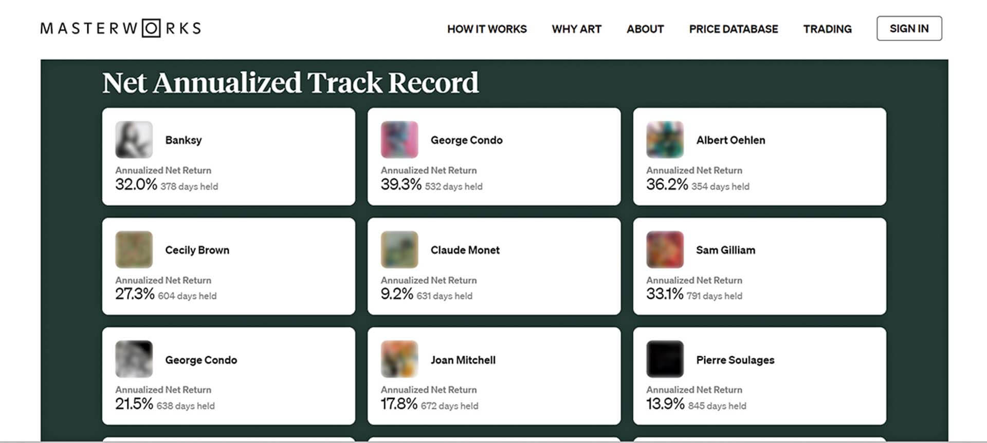 依據如今Artex將培根作品IPO的案例,張正霖舉例說另一家美國公司Masterworks將莫內等經典大師作品分股拆賣的操作本質上也有類似之處。他也詳細舉天津文化產權交易所(以下簡稱天津文交所)早在2011年的激進舉措作為對照。如當年,天津文交所將藝術家白庚延分別估價為人民幣600萬和500萬的作品《黃河咆哮》、《燕塞秋》,以每份額一元、最低認購門檻一千元的低投資門檻掛牌,且未設交易期限,甚至天津文交所還以類似股票交易平台的即時交易系統來提供即時的成交分析數據、K線圖,並可在同日內買進賣出(超越一般股市的交易頻率)。這直接導致推出後就遇瘋狂炒作,首日漲幅即超過100%,兩個月後被政府監管單位介入而強制停牌前,這兩件作品漲至接近原估價的18倍。相較於白庚延在那之前作品拍賣價格均未超過人民幣100萬元,相當於作品在證券化後甚至比張大千、齊白石的作品更加值錢,違背市場規律。
