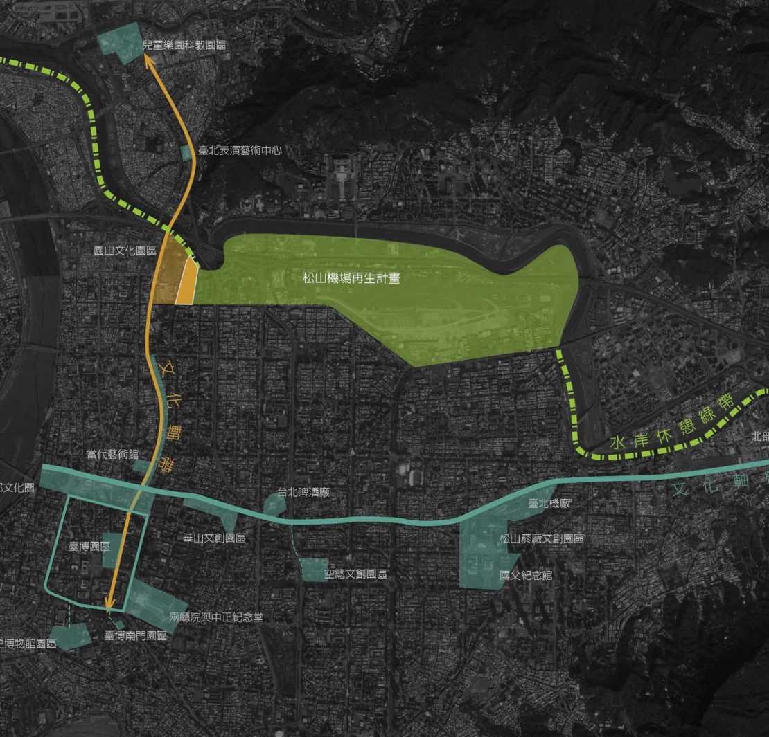 如果尺度再拉大一些,從上述所提的範圍,再擴及東側松山機場,以整個區塊來看, 也與美國華盛頓的國家畫廊、白宮整個園區(National Mall),規模接近。林洲民認為,市民如果對上述尺度有概念的話,更能知道臺北市處在什麼樣的位置,又可以怎麼做。臺北市美術園區接軌國際,並不遜色。