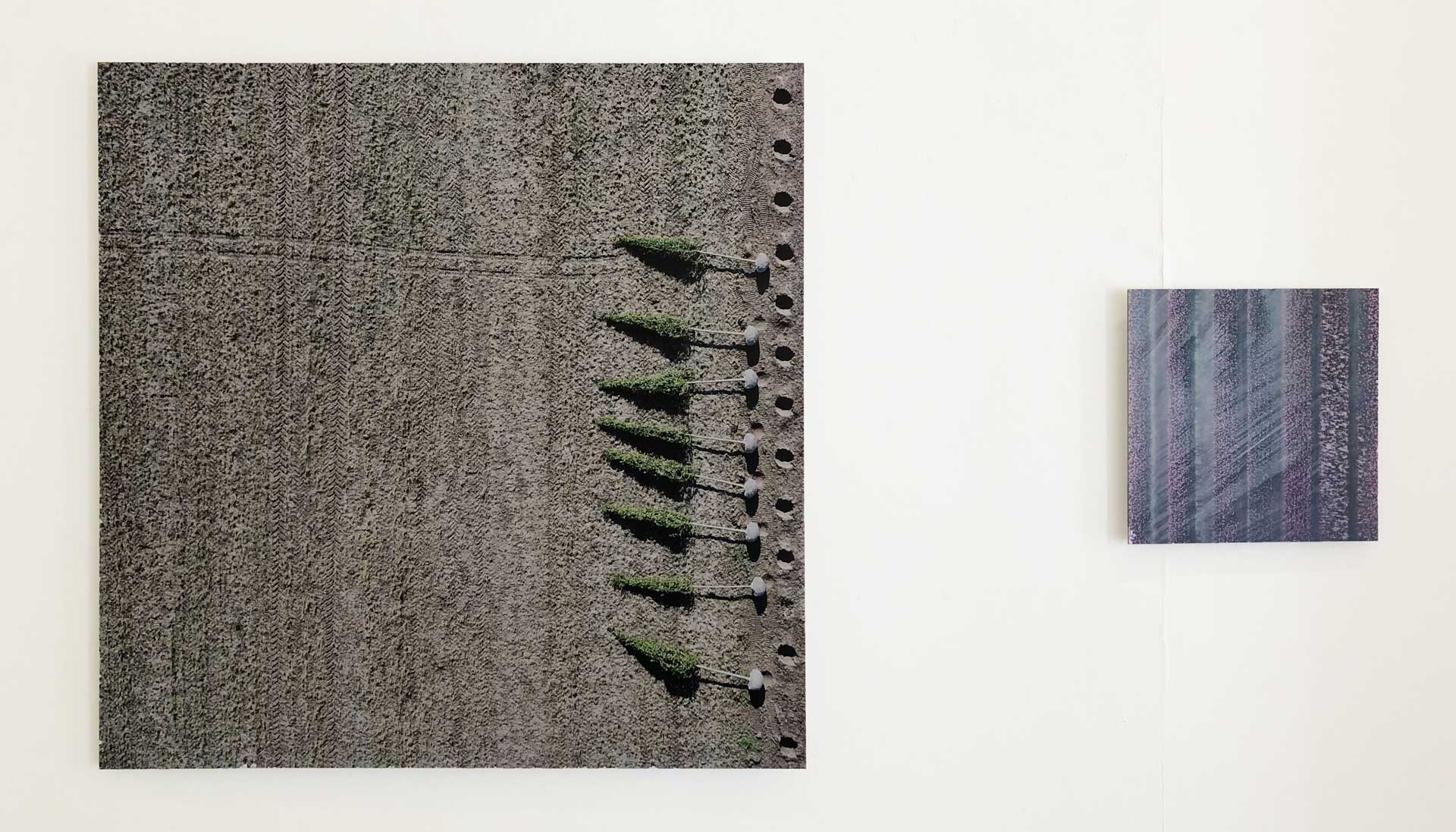 「烏有風景」具有逆轉風景的量能,並棲身在媒介化風景之中。也就是說,眼見不一定所視,所視之處也另有溢於言表的虛擬性與抽象性。換言之,媒材對於創作而言如同轉譯內外的肌膚,隨著觀念與表現的再媒介化,轉向視線之外更為內在的經驗、情感,盼觀者穿越眼前的事物進入相由心生的層次。荷蘭攝影藝術家格列柯.德魯伊特(Gerco De Ruijte, 1961-)在《幾乎自然》(Almost Nature)系列作品,呈現各種破壞風景的「航空攝影」(或稱「空中攝影」,Aerial photographs),以超越肉眼的空拍機視角,使自然本身具有構成畫布與構圖的美感。映入觀者眼簾的地表植物成為有機的自然像素,大地與植物呈現出類似地毯的紋理,看起來像是一幅具有視覺造形的繪畫。這些影像,不僅傳達藝術家對於科技美學的延伸,也透過科技展現虛擬的感官之眼。