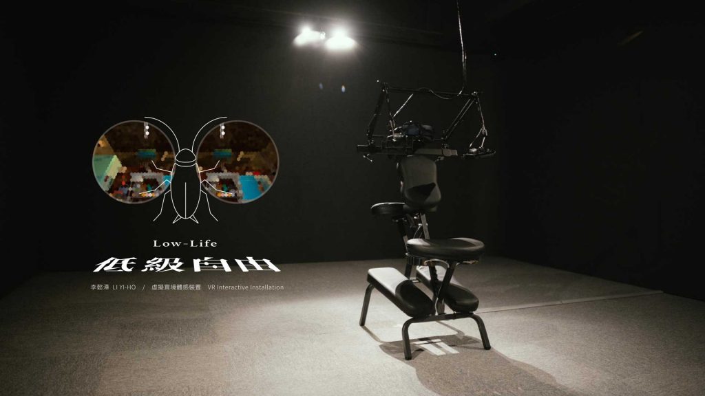新生代藝術家李懿澕在《低級自由》(Low Life, 2021)(註4)中,讓觀眾在感測座椅上化為人類廚房的蟑螂複眼,模擬觸角對於外在環境的非人感知。透過VR跨物種視角召喚的肉身性,感知本身即是媒介,讓觀者的身體感知與模擬動物的感知之間產生回應環境的動能。葉澈的《記憶擴延》(Augmented Memory)(註5)以「擴增實境」(Augmented Reality, 簡稱AR)電影,透過存活在影像世界的3D角色Null的自我對白,探尋詩意與存在意義的延展。觀者能在展場中使用手機的AR濾鏡,觀看Null在不同場景與不同虛擬物件敘事的反應,使觀者遊走在影像敘事與內容的虛實共存空間中。當觀眾的視角與虛擬影像呈現相對性與定位性的流動空間,AR藝術的特質,一方面讓不可見的記憶和可見的場所、地域、公共空間達到融合的可能性;另一方面,讓特定場址成為創新空間的可能性,產生即時互動,觸發記憶和文化擴延的視野。