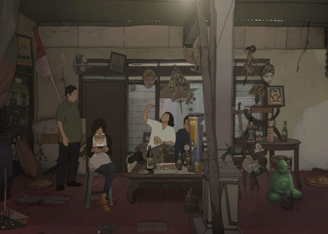 更進一步談及VR的應用在當代已為人熟知,2020年於VR體感劇院主題特展《往家路上》中,喬納森.哈加德(Jonathan Hagard)的《雅加達時光紀事》(Replacements)藉由溫暖的手繪動畫,組合許多雅加達的城市元素,透過簡單的市容轉變,暗喻印尼在地文化、歷史、政治、宗教、都市計畫、科技發展與氣候變遷的各種事件。作品中以一戶人家的路口為中心點,突顯不同時代的印尼文化,經歷峇里島觀光風情、皮影戲傳統、現代化生活,到拆遷後成為資本主義下的便利商店,對面的房屋也從雜貨店、手機行,到最後成為擁有液晶螢幕等高科技設施的巨大清真寺。短短12分鐘的影片,濃縮40年間的印尼城市演變,這些影像對導演而言,都是真實存在的記憶,透過想像重新組合成導演所描繪的空間結構,觀者被固定在一個位置上,只能前後左右觀看而不能移動,彷彿像幽靈般全知者視野觀察此歷史空間,卻也無力改變社會的發展。