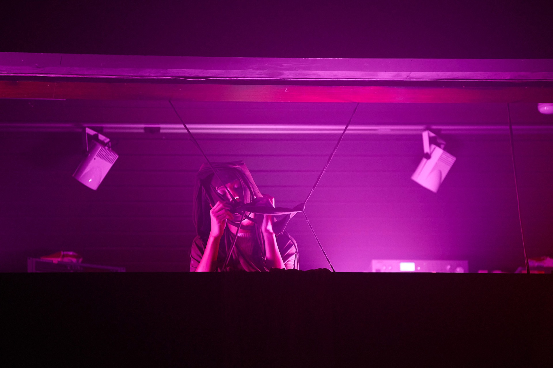 天棚上兩名白衣人赤腳遊走高處宛若DJ台的窗口