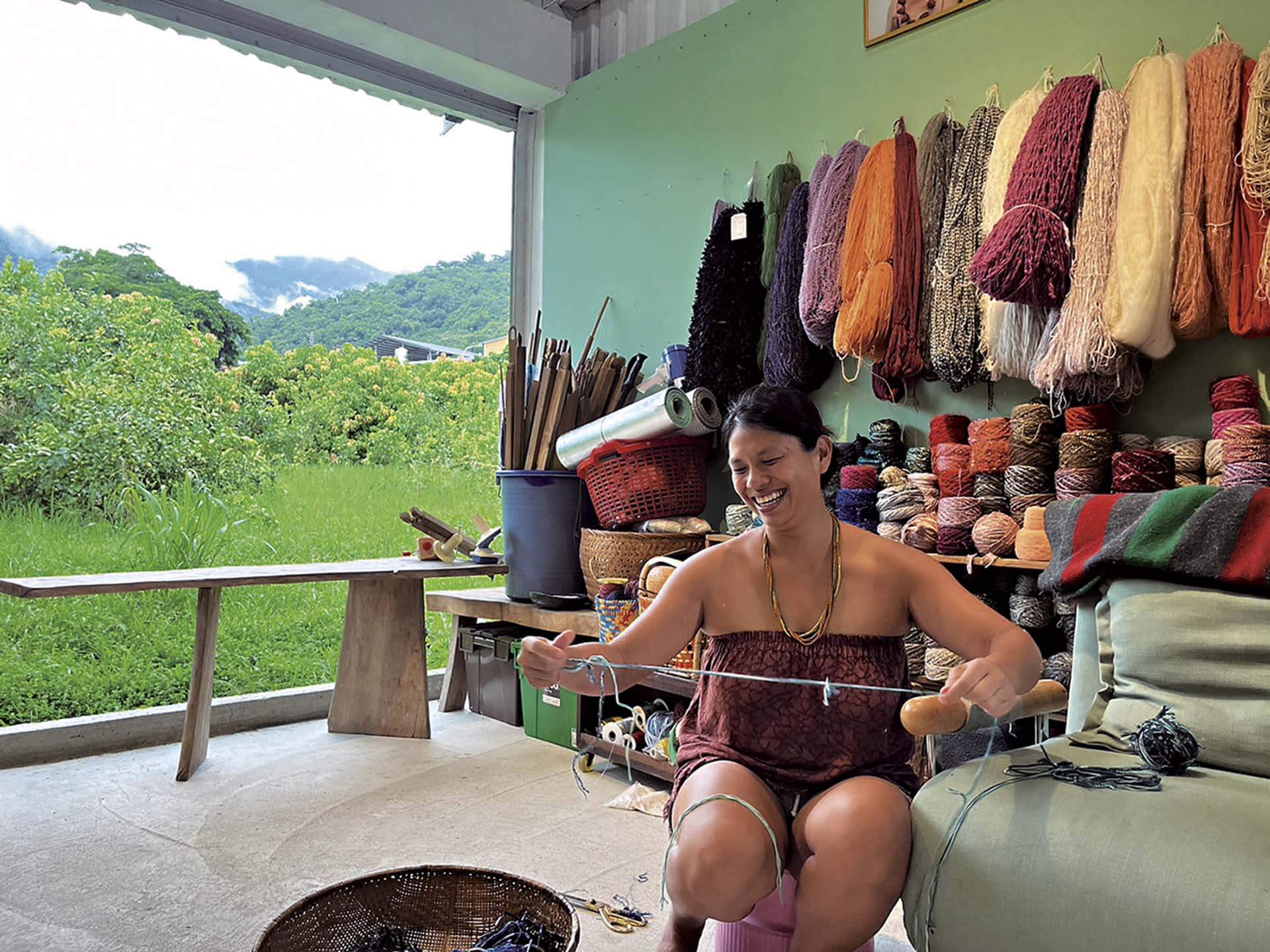 以織布為重要創作方法的藝術家林介文(Labay Eyong),除了個人創作外,也組織部落織女共同完成作品。2016年於新城火車站的《織路》,即是林介文第一件攜手30位太魯閣、賽德克、泰雅族的織女,耗時三年所完成的大型公共藝術作品。在今年「南迴藝術季—夢迴南方」的新作《晒海》,她再度攜手年齡跨距超過50歲的台東織者們共同完成。
