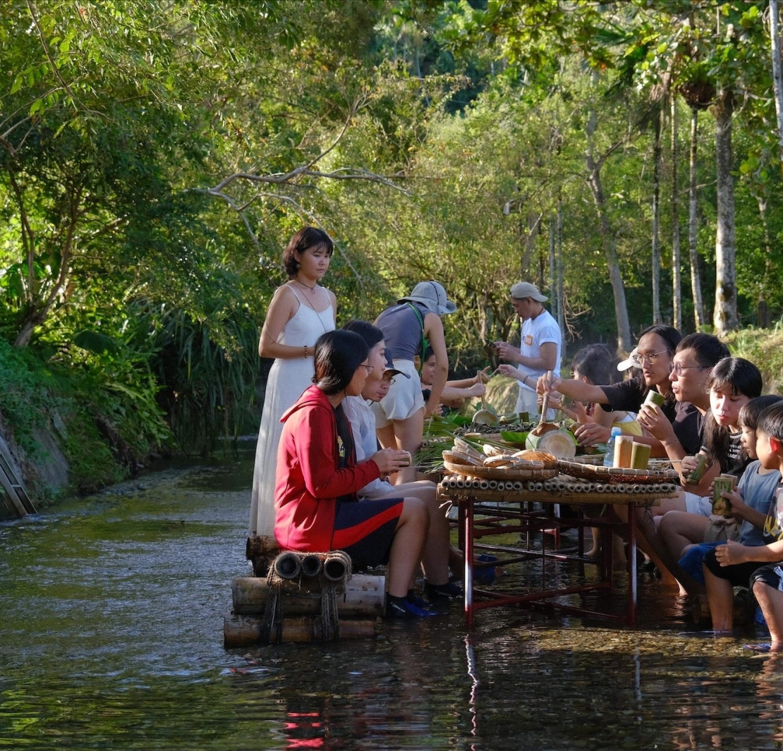 在參與由段沐和蘆芛的系列策展計畫「混血人」之後,這位以飲食文化為創作媒材的藝術家,因緣際會地以個人身分在太巴塱生活,並在協助青年返鄉的地方創生團隊「縱谷線工作室」行銷企劃之餘, 學習在地的飲食文化。上個月以「河上茶席」形式呈現的《殼,迷流,冉冉的焰火》,則是她來到部落一年之後、從實際生活中衍生出的駐地創作。