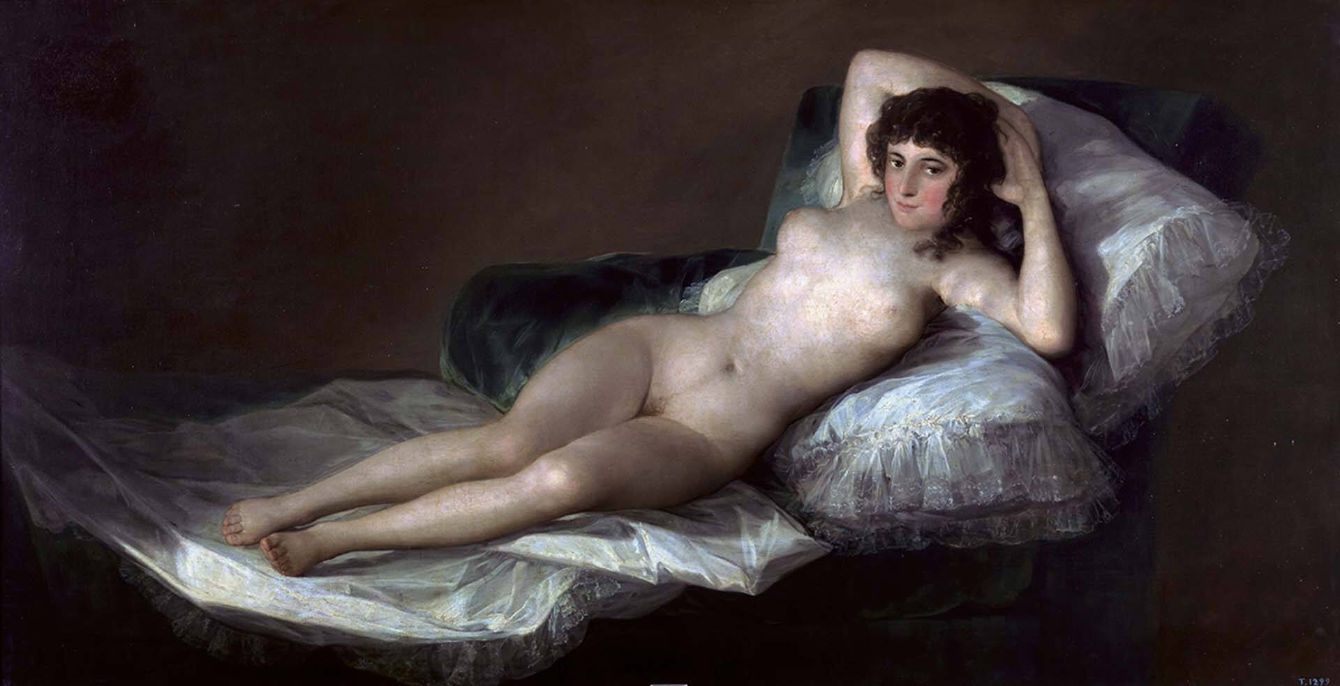 反之,哥雅(Goya)的作品《裸體的馬哈》(The Nude Maja, 1797-1800)描繪一個婀娜多姿的裸女,躺在床上以勾人的眼神凝望觀者;庫爾貝(Gustave Courbet)在《世界的起源》(The Origin of the World, 1866)裡,以細膩的筆觸描繪女性陰部,並大膽露骨地展示出來。這兩個例子可看到藝術家使用「裸體」去勾起情慾的表現,皆強調官能的快感,在問世後也都引發社會對猥褻的討論。