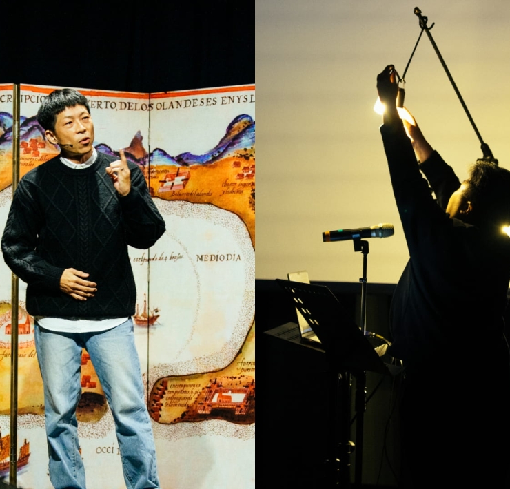 同樣12月台北,線性時間瞬間停滯,「聲波薩滿:立方論壇音樂祭」(聲波薩滿)音樂祭變造的樂器與音響系統作為「器官」不斷增幅聲波,低音震動的頻率也撼動我們的五臟六腑、DJ猶如切開內臟再縫合不同文化與時空的文本跟樂種,「感官體驗」的調度更是讓我們感覺到感知的複雜性,不再只耽溺於視覺奇觀(Spectacle)(註2)。