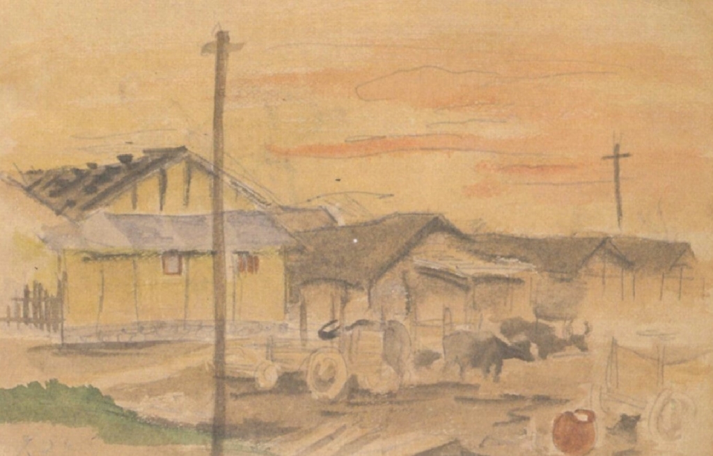從留存的上色草稿中右下角,我們可以看到「昭和五年七月於牛稠山池寫生上午八點」,體現他對「時間」現代性概念的掌握。除此之外,由於日本畫(膠彩畫)與油畫不同,難以帶到現場進行寫生,草稿的日期也說明在正式創作前林玉山經過了長時間的現場速寫,意圖將他所經驗的「曙光乍現的一剎那」再現於絹上。