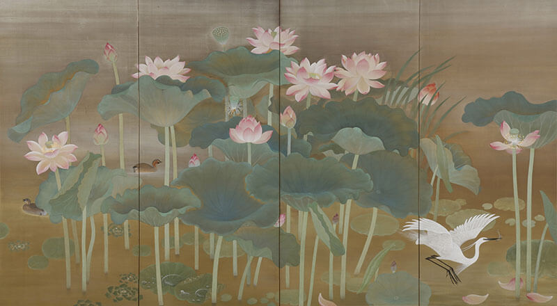 註1 荷花、睡蓮當然是不同品種,但在東方繪畫的傳統中,他們時常一同出現,作為共同的蓮池母題。例如由東京國立博物館典藏,被認為來自中國江南毘陵的畫師所作的《蓮池水禽圖軸》,便描繪了水鳥棲息在有荷花與睡蓮生長的池塘。
