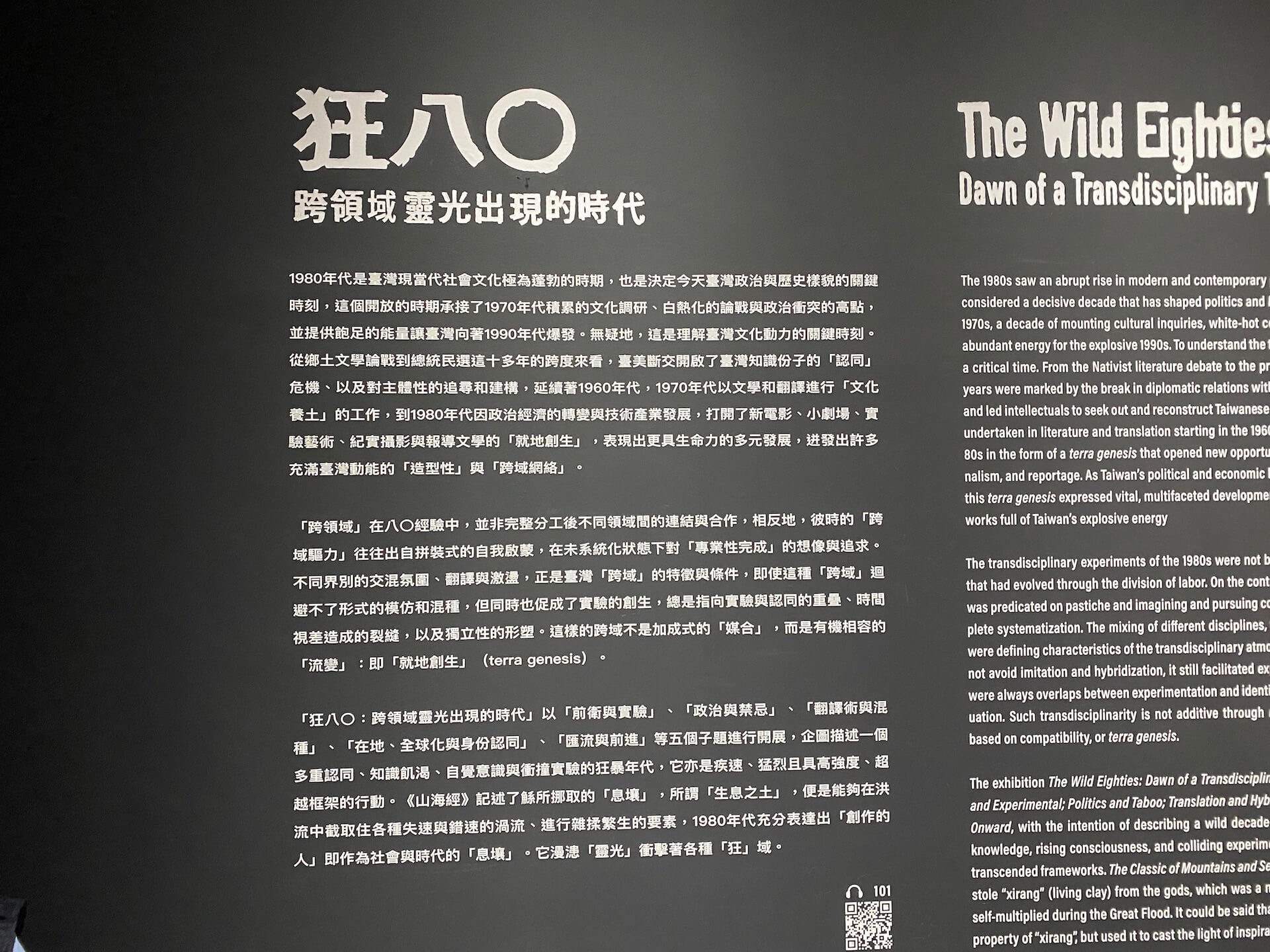 80年代真有那麼「跨領域」嗎?兩位策展人的提法是,當時的台灣社會還不那麼系統化,伴隨全球化而來的文化殖民也沒那麼鋪天蓋地,因此,人與人之間能產生一種跨越專業藩籬的協作關係,而這種不接受西方知識體系規範的跨域連結,亦可視為一種「自我啟蒙」的技術。儘管有基礎的政治經濟分析,但說不通的是,如果跨領域是當時物質條件下的現象,那麼對於更為系統化、專業化、全球化的今天,80年代可能提供什麼啟示?其實「狂八〇」在論述的更接近「前領域」而非「跨領域」。若是歷史無法倒轉,領域化之前的經驗,如何能有助於之後未來的實驗?