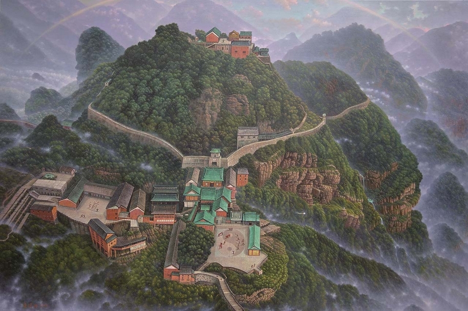 連建興《龜振武當山》,油畫,97×145cm,2018。(連建興提供)