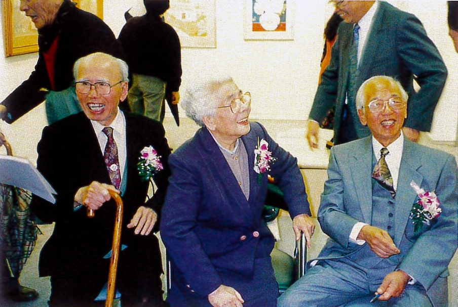 林玉山、陳進、郭雪湖三人在東之畫廊。(本刊資料室)