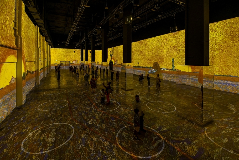 加拿大多倫多「梵谷光影體驗展」(Immersive Van Gogh Exhibit)在展場中劃出圓圈,讓觀眾保持1.5公尺社交距離。( ©Immersive Van Gogh Exhibit)