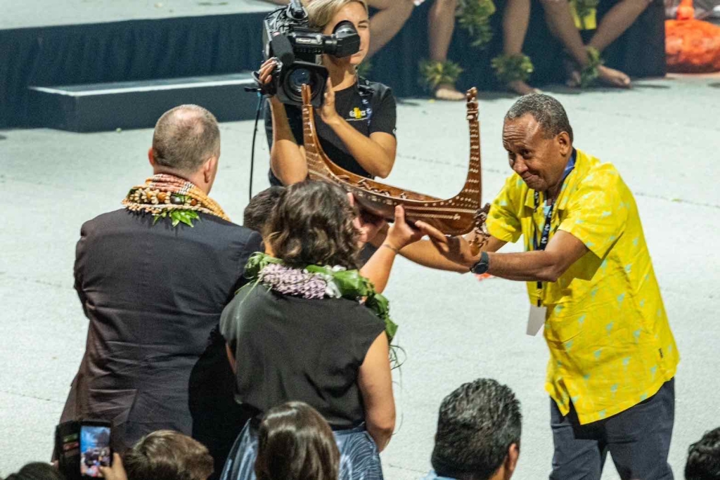 他特別提到此行兩個深刻的場景,一是開幕式,一是由佳平部落串起的交流晚宴。開幕式現場,各國無不卯足全力,輪番以歌舞展演展現自身的文化國力,並透過演說傳遞國家關切的議題,並以贈禮予主辦國傳遞身為太平洋島國共同體一分子的認同與珍視,並且呼應本屆的主題─疫後再生、韌性。