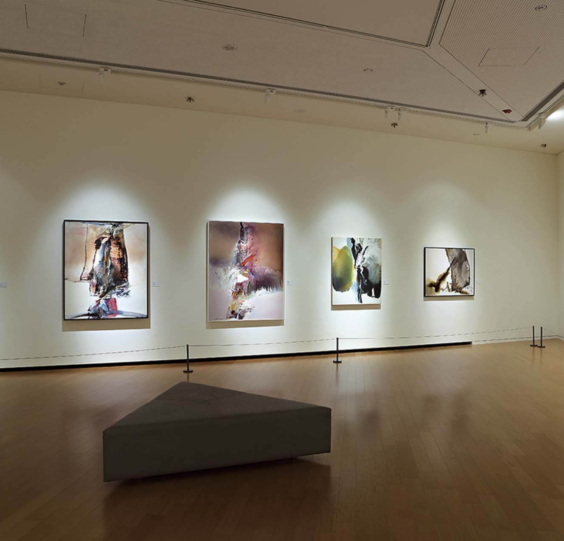 在展覽中,我們可以見到藝術家1990年代的作品,諸如:「雪舟破墨山水變奏」系列的《雪舟頌-1》,此一藉由日本室町時代,廣泛取法中國唐宋元的繪畫甚至於1467年搭乘明日貿易的船隻訪問大明王朝的畫家雪舟(1420-1506)作為起點,以西方抽象主義油畫的方式,再一次去演繹與致敬。在此可以看見莊喆以一種曲折的路徑,日本禪宗—明代中國繪畫—西方抽象表現主義的探索實踐,刻意地抹除東、西方的藝術分野。