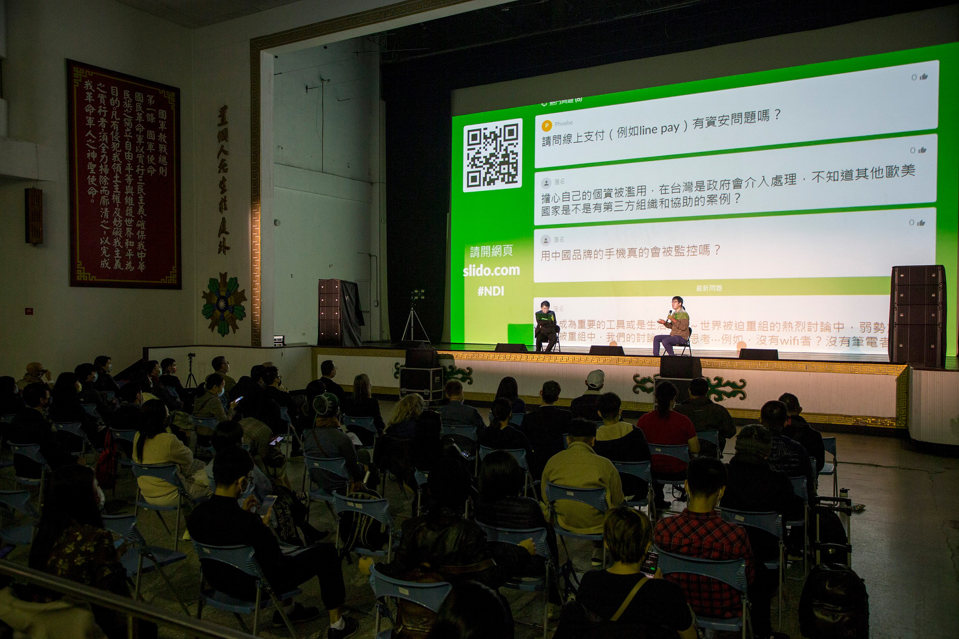 主持與談人耿一偉及李慕約公司共同創辦人王向榮在專題講座「在防疫與資安之間」進行綜合討論。(文化部提供)