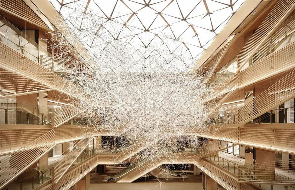 至於飄在銀座的奇幻雲朵《稜鏡之雲》,是無形光雕塑,從去(2020)年初,亮相在東京GINZA SIX。GINZA SIX係由日本建築師谷口吉生(Taniguichi Yoshio)所設計,就是打造紐約現代美術館新館的建築師,已經84歲,懿名遠播。GINZA SIX自2017年啓用開幕以來,即成為觀光客朝聖景點,而在樓層穿梭之間,有如畫框般的中庭廣場,則成了藝術家喜歡的展覽平台,草間彌生、丹尼爾布倫(Daniel Buren)、塩田千春、芬蘭插畫家Klaus Haapaniemi等藝術家,都曾在該空間展出,也有不錯的展覽效果。