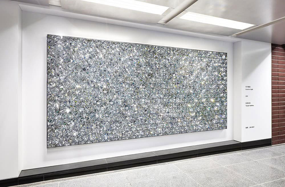 除此之外,吉岡德仁另一件位在東京地鐵銀座站的《光之結晶》(Crystal of Light),以636顆水晶玻璃砌造的巨大水晶藝術品,閃耀著希望之光,在人潮川流的要道上,送往迎來。東京地鐵株式會社於去年3月中旬,宣布配合車站翻新,在京橋站、銀座站、虎之門站、青山一丁目站和外苑前站設置公共藝術品。吉岡德仁在資生堂贊助下,為東京地鐵銀座站B6出口。所作的公共藝術創作。