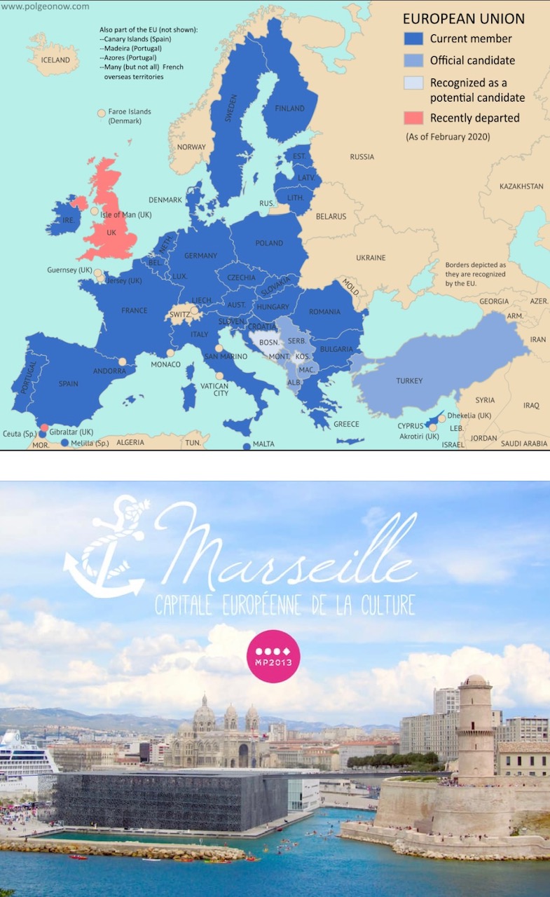 馬賽市為2013年的「歐洲文化之都」(Capitale européenne de la culture)。1985年,歐洲理事會(Council of the European Union)的希臘文化部長Melina Mercouri和法國文化部長 Jack Lang共同倡議「歐洲文化之都」,旨在推動歐洲各國多元文化的交流,以及促進相互認同和發展。1999年起,「歐洲文化之都」的評選由歐洲議會決議,獲選的城市在一年期間,會舉辦各類可振興文化和經濟的活動。至今歐盟國已有40多個城市曾獲選為「歐洲文化之都」。