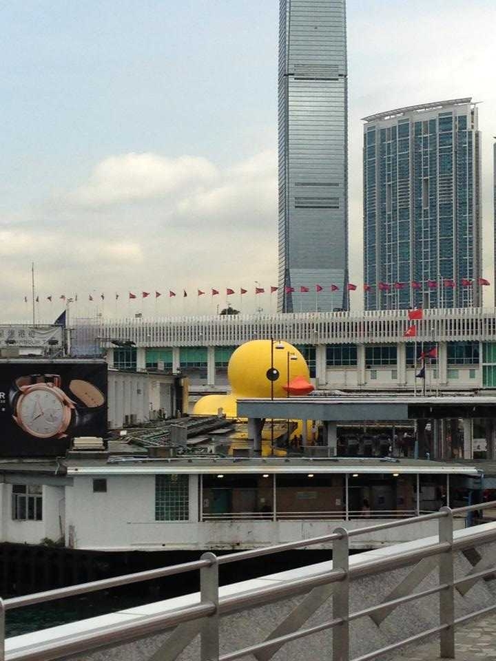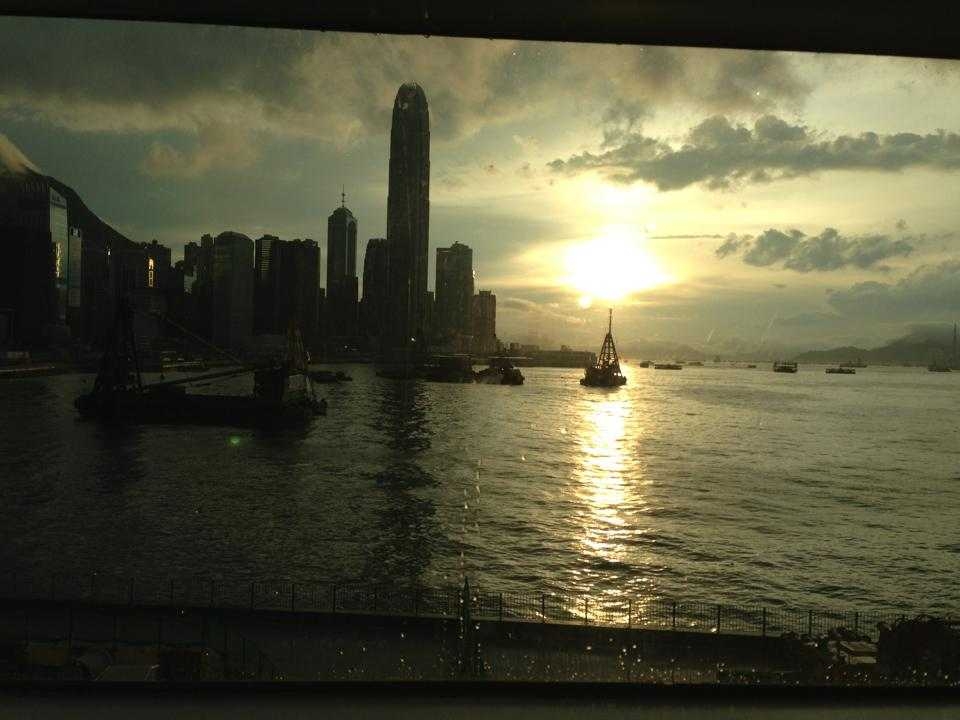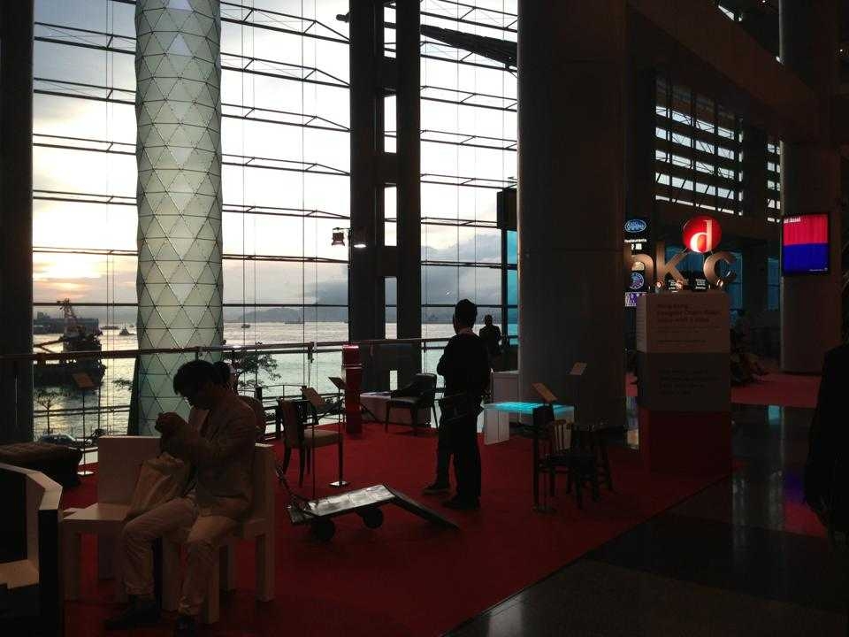 當了一整天的櫃位小妹,收攤時坐在香港會議展覽中心望著黃昏的海面,嘴裡吃著油膩的叉燒飯。「啊!原來這就是香港。」
