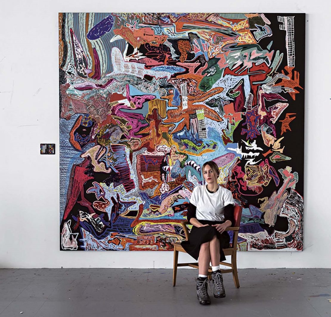 莉莉.基米爾,《夜之騎士》,油彩、油畫棒、壓克力、畫布,193×274.3 cm,2021。(© 莉莉.基米爾,致謝藝術家與阿爾敏.萊希。攝影/Charles Roussel)