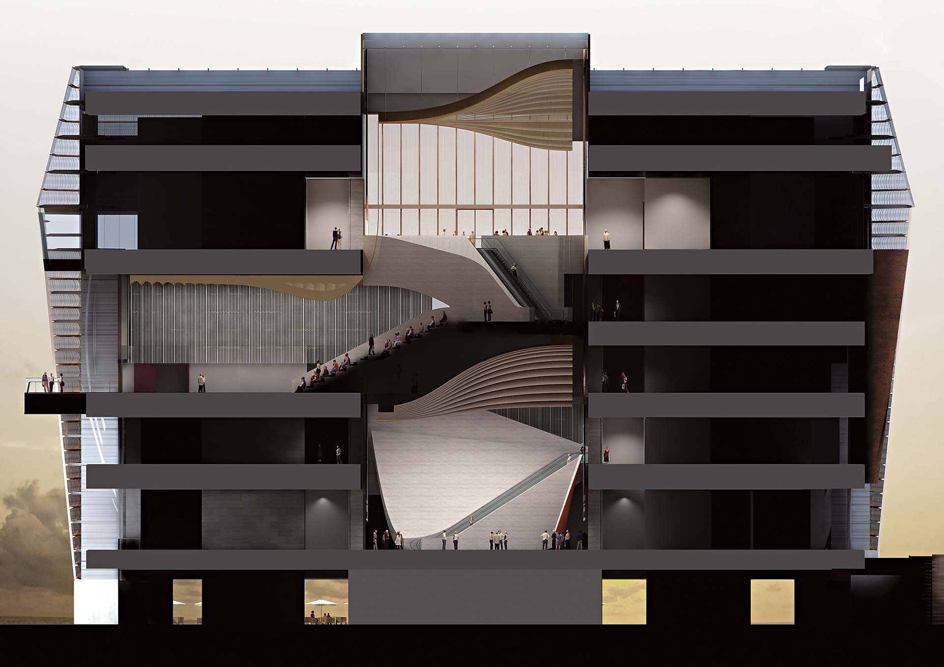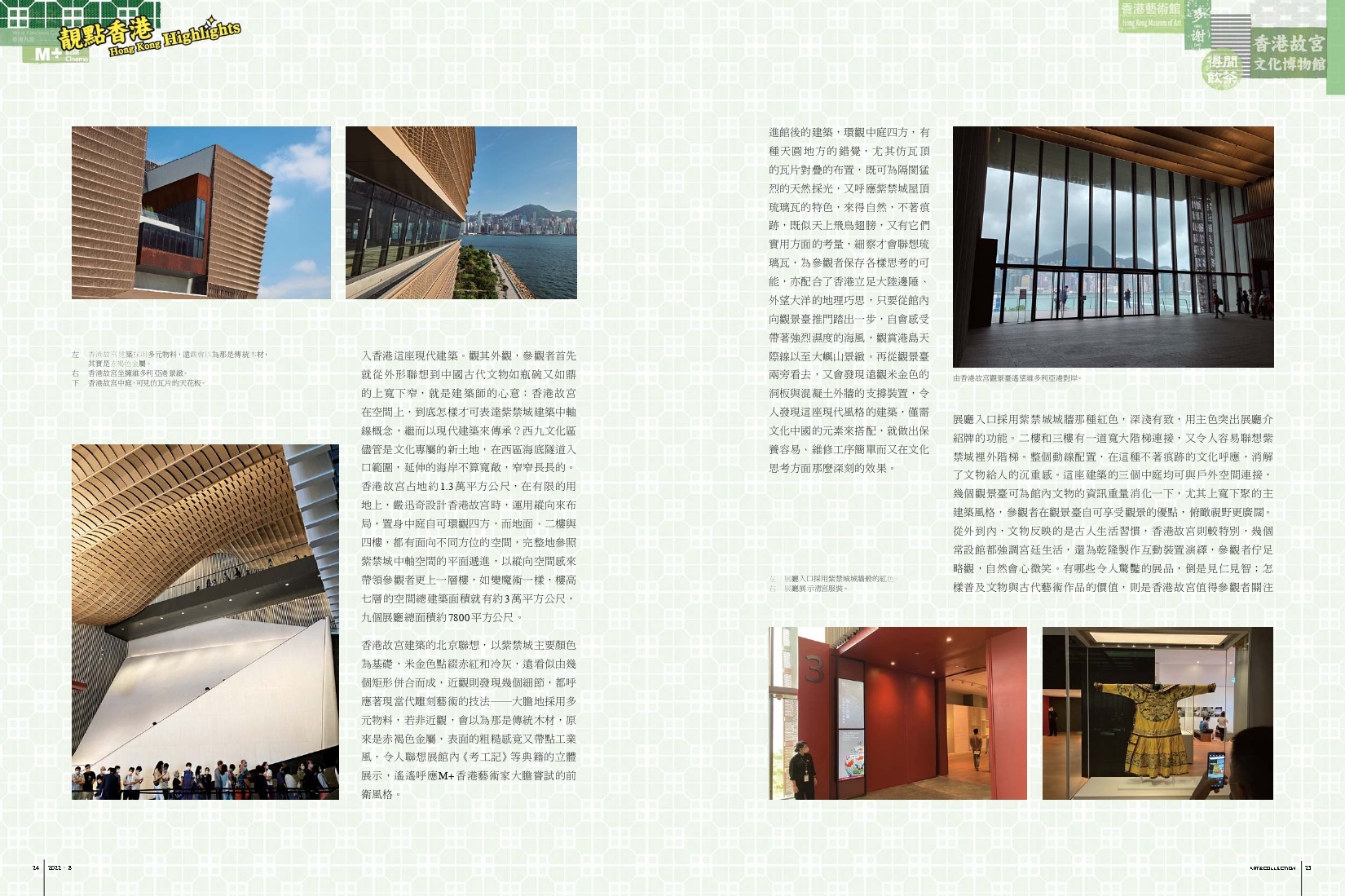 M+博物館開幕至今,參觀人次剛過100萬,它作為西九文化區首個開幕的指標性建築,比起政府其他相類博物館,有更突出的成果。幕牆銀幕固然是重要的、結合科技與建築的成就,外牆用竹來做設計元素,進館後可見港式紅色仿膠燈罩,有著呼應本地文化的用意。更重要的元素,其實也是中庭貫通展區的效果。今天,它與香港故宮在空間設置與時空演繹,可謂遙遙相對,香港故宮建築風格卻又可從尋得M+博物館察看一二──這座視覺文化博物館,同時展出世界各地建築設計,有已完成的,也有未竟全功的。