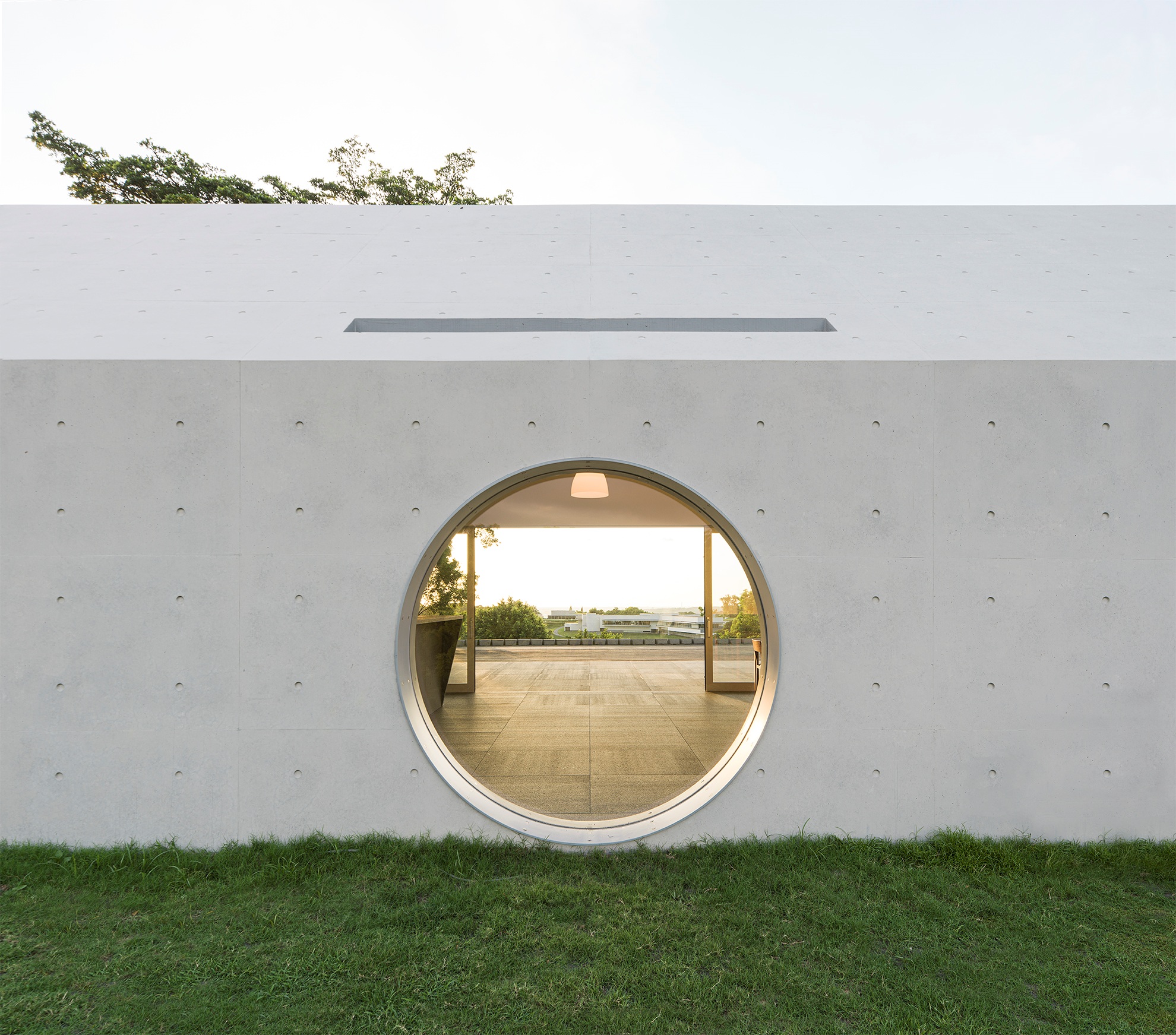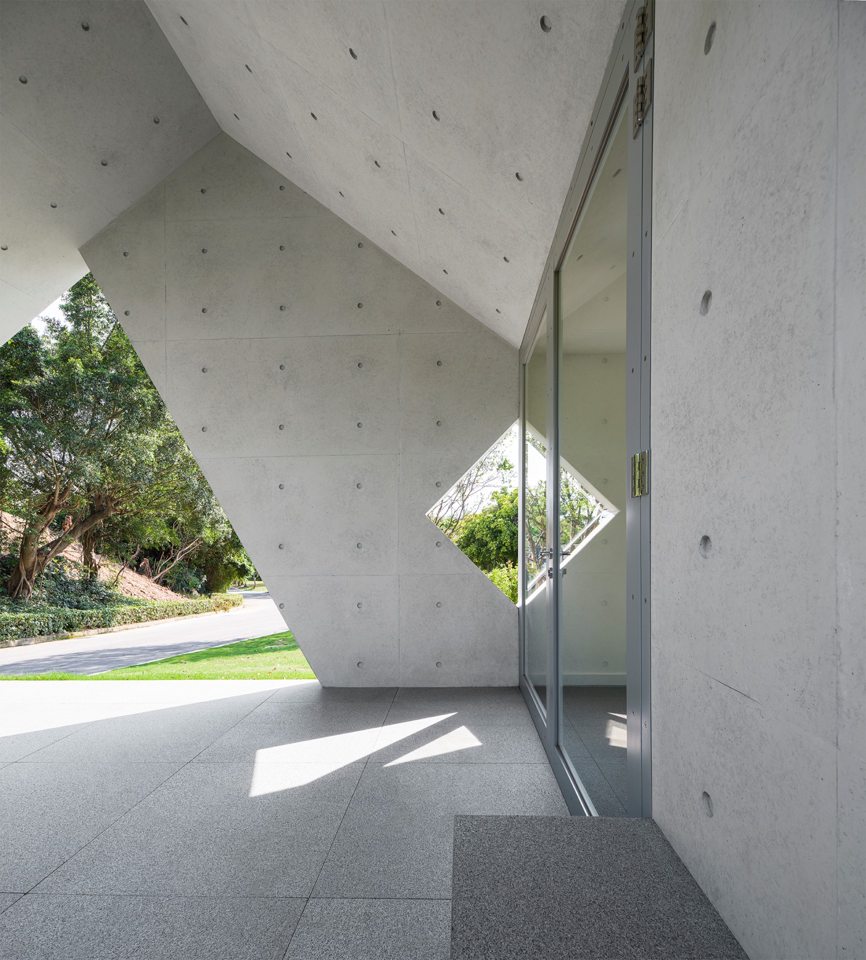 茶屋延續西薩的極簡主義,幾何形狀、清水模、懸壁設計,讓坪數有限,高僅2.5至2.6米的迷你空間,符合建築機能性的設計,同時加入東方圓型框線大窗,引入戶外綠色,有如一幅畫作。60度角的凸簷設計,正好遮住強光,讓室內柔和安靜,而帶著流動感的視線,兼收地形地勢的景觀之美。西薩要求完美的個性,遠近聞名,別看一座茶屋,越是小巧,越不能馬虎。沒有贅飾,也不花俏,乾淨簡約的建築線條,鑲嵌在綠野中,成為綠林區裡、低調奢華的夜明珠,無比吸睛。門房也是一樣,乍看之下,好像只是由幾塊牆板兜在一起而已,其實是幾合概念的應用,簡單樸實。