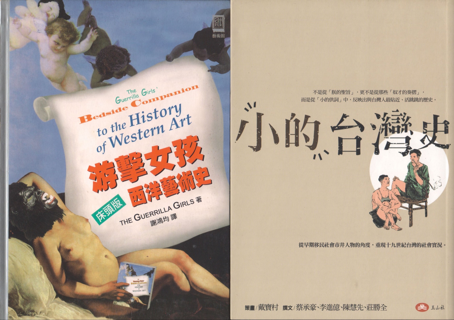 類似上述以「小歷史」的尺幅顛覆主流史觀,或者將邊緣者集合為新主體的想像,也曾被西方女性主義藝術家,用以批判父權中心的西方藝術史。1985年成立於美國紐約的匿名藝術團體「游擊女孩」,致力於揭發藝術界的性別問題與種族主義,之後更出版了一本《游擊女孩床頭版西洋藝術史》,刻意用「床頭版」的輕巧與強調圖文並置的排版特質,重新書寫出以女性或少數族裔為主體的西洋藝術史。